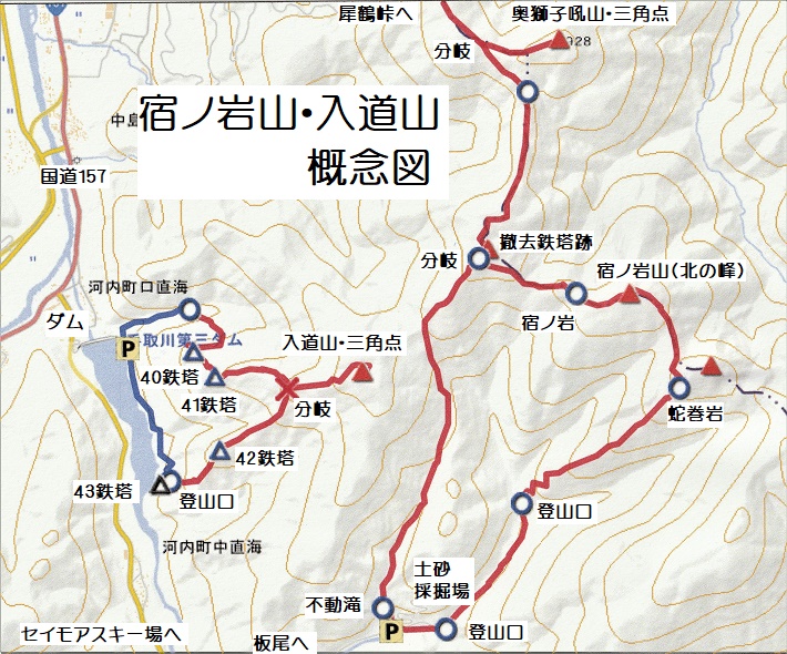 | 第7回 2021.04.15. 40番鉄塔より「入道山」に登り、43番鉄塔へ降りる。 第6回 2020.04.29. 43番加賀幹線鉄塔巡視路より「入道山」に登り、40番加賀幹線鉄塔より下山。 第5回 2019.04.23. 今までと反対周り。40番鉄塔より「入道山」に登り、43番鉄塔へ降りる。 第4回 2018.04.13. 43番加賀幹線鉄塔巡視路より「入道山」に登り、40番加賀幹線鉄塔より下山。 第3回 2014.06.11. 43番加賀幹線鉄塔巡視路より「入道山」に登り、40番加賀幹線鉄塔より下山。 第2回 2010.04.29. 43番鉄塔横より「入道山」に登り、ダム付近に下山 第1回 2009.05.18. 43番鉄塔横より「入道山」に登り、ダム付近に下山 |