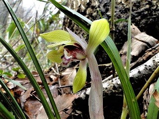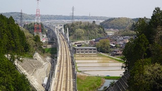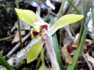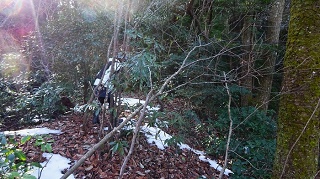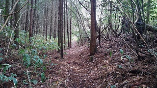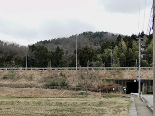 2025年04月19(土)9回 「花房山」三角点を確認、車で錦城山へ 加賀ゆめのゆで金沢のA女史と待ち合わせ。国道8号線の新幹線のガード下を通った、大聖寺の「細坪」交差点を入り、新幹線のガード下付近の道の広い所に車を置く。 新幹線がトンネルに入る地点が見える。あそこのトンネルの上を歩く。 細坪交差点から50m程の地点の、「熊坂線№41番」の鉄塔巡視路標識を登り出す。 少し登ると道は安定。 ヤマルリソウ スミレ アオキの花 「熊坂線№41番鉄塔」を通る。40番鉄塔の方へ進む。 途中で鉄塔巡視路から外れてトンネルの方へ。 新幹線トンネルの上に着く。遠くに観音像。良く見ると車道に置いた自分の車が見えた。 しばらく待っていたら新幹線が走ってきた。 今度は三角点を目指す。道は無いが一番高い地点を目指す。 一番高い所に「4等三角点・点名は花房・標高は85m」。今はここを「花房山」としている。 14年前に探したが見付からず、13年前にたどり着いて提げた「点名札」。今でも残っているのは奇跡だな。11.25分。下山開始。先の方へ進んで降りる。道は無し。適当に藪の少ない所を降りる。上手い具合に民家の屋根が見えてきた。 ミヤマシキミ チゴユリ 今年初見 民家の間に出た。アケビ。 車道を歩く。ドウダンツツジ モミジイチゴ ムラサキケマン 車に乗り、今日の昼食場所の大聖寺町「錦城山」へ移動。金沢の丁女史も合同の予定で電話が掛ってきた。お待ちかね。 ■車で「錦城山」まで移動する。■ 2025年01月19日(日)8回 加賀インター-「大蛇山」往復 今年は巳年。巳年に因んで蛇の山に登る人が多い。近くでは「蛇尾山」が多い。しかし老人には雪が多くて無理だな。S女史より「大蛇山」のリクエストがあった。女性に年を聞くのはヤボだが、彼女は巳年生まれらしいぞ。大蛇山には二人で登った事がある。今回は3回目。 加賀インターを越えて橘町に至る車道の途中から、高速道路のガード下を通り抜け、空き地に車を置く。 リュックを持たずに出発。200mほど歩くと溜池に登る階段がある。石段の階段を登る。 溜池がある。ここから先は道無し。右に溜池を周って登った事もあるが、今日はすぐ目の前の杉林へ。 杉林を通り抜けると斜面になる。 ルートはS女史任せ。何処から登るかな。 道は無いがピークが尖っているので、上へ上へ。雪がある所は彼女の足跡をたどり、足跡の無い所は適当に。置いて行かないで―。 50分も掛かって頂上に到着。林の中の丸い平らな空き地。真ん中に三角点。展望無し。このピークは「大蛇山」と呼ばれている。 「2等三角点・点名は右・標高は104m」。大きな保護石に囲まれている。山札は昨夜の真夜中に作った、急造の手作り。山に登っても山札が無いと登山証明にならないと、彼女に頼まれていた。 2等三角点は珍しい。国土地理院地図の2万5千分の一地図「大聖寺」には、この一箇所のみである。 直ぐ下山開始。登って来た方の景色。 昔の踏み跡らしきものも残る。 この杉林を抜けると溜池だ。 階段を折れると向こうに置いた車が見える。 国土地理院のホームページの三角点情報の「点の記」に、三角点のある地点が俗称「大蛇山」となっている。2等三角点も珍しい。地理院地図「大聖寺」の中には、この一ヶ所だけである。 車に乗り次の「治郎平山」へ登りに行く。 ■次回登山は、この後車で移動「治郎平山」へ■ 2024年03月24日(日)7回 加賀市「花房山」と「大蛇山」 すぐ横に鉄塔巡視路がある。前回もここから入った。 「熊坂線№41」の標識。いきなり倒木の下の下を通る。 巡視路は整備されている。 歩きやすい道。 「熊坂線№41」に到着。 「鉄搭№40」の方へ進む。 「鉄搭№42」は八号線近くの鉄塔かな。地理院地図に鉄塔記入が無いのはなぜ?。 アオキ シキミ カンスゲ 新幹線のトンネルの上に出る前に、右に分岐があり鉄塔が見える。「熊坂線№41」に寄ってみる。巡視路はその先降って行く様だ。戻る。 戻って北陸新幹線トンネルの上に着く。新幹線が通ったが上手く撮れなかった。新幹線のいない写真。 鉄道マニアには、良い場所だろうな。 この先は巡視路が無いので、途端に荒れた道。道の無い所を高い所を目指す。一度降るような所もある。ヤマップ頼りで三角点に到達。「4等三角点・点名は花房・85m」 近くの木に、12年前に提げた「点名札・花房(けぶそ)」がまだ残っていた。奇跡だな。 ここは「花房山」としても良いな。12年前はここから藪漕ぎで、細坪町の神社マーク目指して藪漕ぎで下山した。 今回も藪漕ぎで下山、藪の無い所を選んで下山開始。所々に道らしきものがある。 クロモジ ヤマザクラ 道は無いが、途中の作業道の跡みたいな日当たりの良い場所で昼食。下山開始。適当に藪を避けて降りて行ったら、民家の屋根が見えてきた。 上手い具合に民家の間から舗装道路に出られた。神社のまだ手前だった。 あとは舗装道路を歩い戻るだけ。坪野町の中は歩道が付いている。 イヌフグリ チンチョウゲ。 リュウキンカ 新幹線