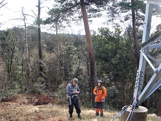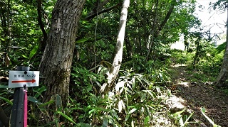 ![]() 無理をすれば柵を乗り越えられそうだが、違反はだめです。三角点確認は諦めて昼食。 ![]() 下山開始。まっすぐに八号線を目指して降りる。途中に「ため池」の横を通る。13.30分。 ![]() 八号線の見える所まで降り、田んぼの向こうに見える巡視路案内板まであぜ道を行く。「熊坂線№27」を鉄塔目指して登る。 ![]() 13.55分に「熊坂線№27」の鉄塔に登り着く。展望なし。尾根筋の巡視路は、整備されているようで歩きやすい。春の花が色々と咲き出してきた。名前は間違えているかも知れません。 ![]() ![]() ![]() イカリソウ ヨウラクツツジ エンレイソウ ![]() ![]() ![]() ミズキ? アケビ クサイチゴ ![]() 28番の鉄塔まで戻り着く。新緑の季節に入ってきたようだ。29番に戻り着く。この先30番・31番と巡視路が続いていて、以前一度だけ通ったことがある。 ![]() 今回は夕方より仕事があるので、29番鉄塔より、朝登って来た巡視路を降りる。14.45分に三差路に置いた車が見えてきた。収穫のワラビとコシアブラを半分分けて頂き、ありがとうございました。 ![]()