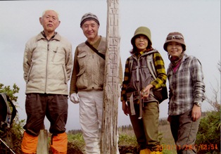 11.10分、登山道の真ん中に三角点がある。この先まだ登り道で、100mほど先が頂上である。この三角点は頂上より低い地点に設置されている。 ![]() ![]() 頂上は、若い先着パーティが食事の準備中である。 ![]() 到着。我がパーティーお待たせしました。ここまでくると「白山」がドカリと見えるはずだが、霧の中。 ![]() シャッターを押してもらって記念撮影。すぐに避難小屋の方へ降りてゆく。 ![]() 振り返ると、さっきまで居た頂上が見える。霧が段々と晴れてきたような感じだぞ。 ![]() 大きな避難小屋が見えてきた。11.50分。 ![]() 誰もいないので貸切のパーティーである。 ![]() 大きな鍋で、なんとなんと「鴨鍋」が振舞われた。 ![]() 食事が済んだら大きなバースデーケーキが出てきたぞ。この年になってローソクの炎を吹き消すのは恥ずかしい。有難うございます。 ![]() ![]() ![]() 食事を済ませてコツブリ山の方へ登り出したら、勝山の方がドカンと見えた。右が浄法寺山・冠岳?、手前が越前水無山?、右が大佛寺山? ![]() ![]() コツブリ山に登り着いたら、白山がドカンと見えた。別山も見える。まだ雪は少ない。 ![]() ![]() ![]() ![]() コツブリ山より下山開始。展望の良い尾根歩きとなる。 ![]() 縦走路の突き当りのピークから谷の方へ降りる。ピークの上は「大日山」だ。 ![]() ![]() 谷底まで降りて川を渡ると、谷沿いのぐちゃぐちゃ道になる。大滝に近づくと、滝の段差の崖の道を降りる。年寄りには怖い。ロープが下がっているが大分古そうだ。岩は濡れている。濡れた岩に腰を掛けてロープに繋がり四つ這いで降りる。降りると滝の横に出る。仲間はとっくに先へ行ったようだ。15.00時。 ![]() ![]() ![]() 滝から下は歩きやすい遊歩道になるが、なかなか遠い。15.25分頃に駐車場に到着。お待たせしました。自動車のカギを預けるのを忘れてすみませんでした。 頂いた写真です。 ![]() ![]() ![]() ありがとうございました。 ![]() ![]() ■次回登山は、11/27「遊泉寺砂山-遺水観音山」へ■ 2015年09月19日(土)9回 「取立山」-「コツブリ山」-大滝 今日から秋のシルバーウイークである。私はシルバーウイークは、仕事が入らなかったのて暇である。続けて休みが取れるので、以前登った時天候が悪くて残念だった東北の山を狙っている。週一便月曜日に、敦賀から秋田経由のフェリーが出ている。それに車を乗せて秋田より「岩木山・八甲田山・八幡平」と、百名山三山を、観光をかけて回る予定。今日はその足慣らし。 加賀の里山を歩けばよいのだが、自宅近くの小松の山は、最近クマ出没のニュースが連日報道され、怖くて入れない。色々考えて「取立山」を見付けた。8.40分に自宅を出て、白峰より谷トンネルを越え、福井県に入り、しばらくで「東山いこいの森」の標識で左に入る。キャンプ場を通り越して登って行ったら、検問所があり、入山料500円を支払った。平日で登山客の少ないときは、検問所が無いこともある。 広い駐車場には車が一台も無いのでびっくり。10.00時に車を置き、登山口の電話ポストの中の、登山届を書き、箱に入れる。靴を履いてすすきの生い茂った登山路に入る。秋である。秋の花も咲きだした。 「ユウガギク」 「ゲンノショウコ」 「ムシャリンドウ」 「カメバヒキオコシ」 「オトコエシ」 お爺さんが、中学生らしい二人を連れて追いついてきたが、爺さんお疲れの様子。頂上で20分程いたのに追いついてこなかった。帰ったのかな?。 急坂を登り切ると緩やかになり、勝山市の方が見えてくる。銀色ドームは恐竜博物館。 「ホツツジ」 「アキノキリンソウ」 12.10分に頂上到着。誰も居ない。昼食。 ここからは「白山」の眺めが素晴らしいのだが、今日は雲があり見えない。一瞬白山の稜線が見えた。 一人で記念撮影。 「大長・赤兎」方面。 「コツブリ山」の向こうに「手取湖」が見える。頂上からは、同じ道を引き返すつもりだったが、欲が出てきて、周遊コースを滝の方へ下りることにして、12.30分下山開始。 ![]() 頂上付近から、コツブリ山あたり辺までに、「リンドウ」がいっぱい咲いている。天気が悪くてつぼみの花が多い。 最近登山路補修で電動ノコギリが入ったらしく、所々リンドウが刈り倒されていて、少しかわいそう。前方から男性一人登ってきて立ち話。誰も登っていないですねー。 コツブリ山、13.15分。リンドウがいっぱい。 コツブリ山から坂を下りだすと、また勝山の方が見えてくる。左が取立山頂上。右下に縦走路が見える。 右手に「護摩堂山」の頂上のアンテナが見える。 振り返ると、右が取立山頂上。左がコツブリ山頂上。 尾根の突端から左に、斜面の急坂を谷底目指して下りてゆく。赤い「ヤマボウシ」の実。かじると甘い。川を渡り、川筋に沿って下ると、滝が近づいてくると、急な崖の道となり、鎖が下がっている。杖が邪魔になる。若い山ガールがさっそうと下から登ってきた。今頃から登るらしい。 四つ這いになって岩を下りていたら、いつの間にかストックを一