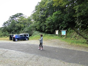 7.45分、金沢のK君の家へ迎えに行く。高速に乗り東海北陸自動車道の五箇山インターで降りる。8.35分。国道を少し進むと、庄川を渡り直ぐ右に林道の起点がある。ブナオ峠野営場10キロの標識がある。林道は細い所もあるが舗装してある。結構長い林道である。9.06分ブナオ峠の上に到着。広い駐車場があり案内板もある。近くに野営場もあるらしい。峠の先の林道はバリケードがしてあり刀利ダムへは抜けられない。
