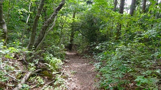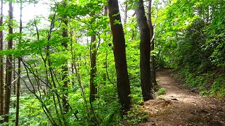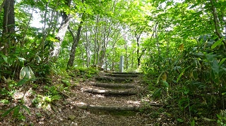 道は広く整備されていて歩きやすい。始は少し下るように登山路は始まる。登り坂が急になると長い階段になる。階段は4ヶ所くらいある。