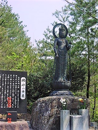 十一面観音像の建つ広場に到着。これから目指す「佛峠」の由来が書いてある。「養老年間に尾小屋の中山氏宅に疲れた女泊まれり。厚く待遇し、元気になり尾小屋・阿手間の峠まで送る。女は礼に十一面観音像を渡し、我白山を見る事を得たり。さればこれにて別れんと、白キジになり飛び去った」。今日は「佛峠」まで行く予定。