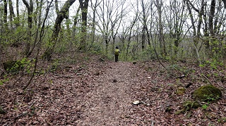 9.10.ゲレンデの上に到着。ここから雑木林の中を緩やかに歩き出す。春の花を探しにきたのに、期待したほど花が見えなくて残念。少し時期が早いようだ。9.50.展望台に到着。特に表示が無いが、木が切ってあり、尾小屋の町と、向うに海岸線と小松平野が見え、ドームも見える。