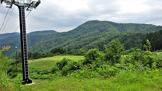 熱中症アラートで外で運動は止めとけとか、老人はクーラーを掛けて部屋に居ろとか大変だ大倉岳は。五百峠まで車で上がれば何とか登れそうだ。水害被害の交通状況を調べたら、尾小屋から五百峠までは車は通れそうだ。尾小屋から五百峠までまでは一車線の林道並みの国道(酷道)である。前方より車が来ないように祈りつつそろそろと登る。途中2台と遭遇したが先方の車が下がってくれた。峠から鋭角で戻るように車道があり、スキー場の上へ出れる。