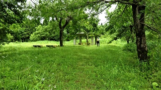 ここから段々緩やかになり、12.50.林道を横断。稚児堂跡を通過。弁ヶ滝への分岐もある。再び林道に出る。ここは朝に車を置いた避難小屋の近くだ。13.30.しばらくで避難小屋に出た。小屋の側から法恩寺山の頂上が見える。 ![]() 中ノ平避難小屋の側にはベンチがあり、蛇口の水場がある。東屋も見える。水を飲んでいたら曇っていた空から雨が降り出した。小屋に入り込んでお湯を沸かして抹茶を一服。雨も本降りへ。今日の登山はあと1時間の頂上を諦めてここで中止とする。14.00.頂上の方へ登山路を15分歩いて、右へ少し降りると朝、車を置いた駐車場に着いた。 15.10.平泉寺へ車を取りに行き、駐車場隣の、ガイド本に載っているソフトクリーム屋さんでソフトを食べて帰る。 |