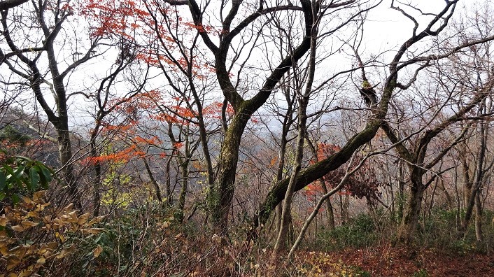 釼ヶ岳よりちょっと低いな。 ![]() 大きな展望台に登る。「鞍掛山が見えるな。昔は白山が見えたが、今は木が大きくなって、見えないかも知れんな。いずれにしても今日は見えず。 ![]() ■次回登山は、6/26加賀「御堂山-奥獅子吼山」へ■ 2018年12月01日(土)8回 清滝ダムより「剣ヶ岳」を往復 ![]() 今日は一人なので、自分のホームページから、歩きやすくて、しばらく歩いていない山を探して「釼ヶ岳」を見付けた。高速を金津ICで降り進むと、八号線に分岐が出来ていた。どちらに進んでもまた合流するようだ。左に折れ「前谷」信号を左折して「清滝ダム」の方へ進む。清滝町を過ぎると、イノシシ除けの柵があり、開けて通る。 10.40分に清滝ダム到着。写真を撮っていたら、上から車4台が降りて来て、下って行った。どうも狩猟の車らしい。今まではここに車を駐車していたが、今日はもう少し先まで車を乗り入れることにした。 ![]() ![]() 思ったより道は荒れていなくて、10.50分に大きな崖の下の広場に、車を転回して駐車する。この先は道は細くて、入り込まぬのが良いようだ。 ![]() 200mほど進んだら右手に登山口の標識がある。 ![]() 初めは杉の林の中を、折り返して尾根の上まで登る。 登り切ると「清滝ダム湖」が見下ろせる。ここは「中間点」の標識がある。 ![]() ![]() ここからは杉の木は無くなり、雑木林となる ![]() 頂上が近くなると「ブナ林」となる。 12.30分に「釼ヶ岳」頂上に到着。 ![]() ちょっと天気が悪い。 ![]() ![]() ![]() 金津小学校4年生の、登山記念の幕が落ちていた。 ![]()