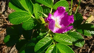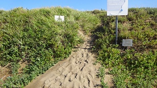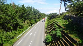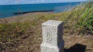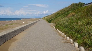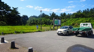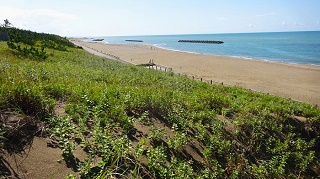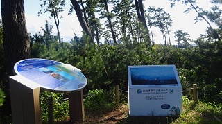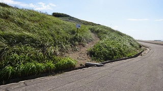 ![]() 付近を散策していたら倉部川のほうに「竹松海岸はまなす群生地」の立札があった。白山市の指定天然記念物であり採集禁止と書いてある。倶利伽羅の合戦で敗れた平家軍が、財宝を埋めて見印にはまなすを植えたという話が有る様だ。 車に戻り「あじち山」へ移動。 ![]() ![]() 車に戻り少し金沢方面に走ると信号があり、直進する「しおさいロード」に入る。しばらく走ると道路の上を横断橋が架かっている。その下をくぐって、すぐに右に道路を入る。砂丘の畑地が広がり村が見える。右に広い駐車場がありトイレもある。何度もこの道を通っているが、案内が無いので気が付かなかった。公園になっているようで、案内図を見て向かいの松林の小山に登る。 ![]() あずま屋がある。ここまでに登る道の両側に、夏にオニユリがぎっしりと咲くとかいてある。ここが「あじち山」だろう。三角点が有るはずなので高みを探したが見付からなかった。 ![]() しおさいロードの上の横断橋を渡ると、展望台がある。夕日を眺めるのには最高だろう。 運動の為歩くには、ここに車を置いて砂浜伝いに、五軒丁山まで往復するのがいいだろう。はまなすとオニユリの花の時期が一致しないのが残念だが。 |