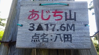![]() 晴れていれば「白山」見えそうだ。 ![]() 自転車専用道路をぶらぶらと戻る。自転車は一台も通らない。 ■次回登山は、6/2加賀「動山」へ■ 2011年07月26日(火)2回 「あじち山」と「五軒丁山」 ![]() 新聞に八田の「オニユリ」が咲いたと云う記事があった。前に一度寄ったことがあるが、その時は冬だったし、あじち山の三角点も不明だった。そのあと相棒K君があじち山の三角点を見付けたと報告してきた。笹の中に埋もれていたとの事。 金沢の友達と食事の前に寄ってみる。金沢県民海浜公園辺りより松任の方へ「しおさいロード」を走り道を横切る跨線橋の手前で右に入ると駐車場とトイレがある。入り口の大きな看板が見える。 近寄るとオニユリが見えてくる。上にあずま屋が見える。この山が「あじち山」である。 ![]() ![]() 黒い斑点のある百合である。よく見ると茎にヌカゴが出来ている。案内板に寄れば、別名「天蓋百合」と云うらしい。 ![]() カメラ抱えて、誰か一人登ってきた。 ![]() 相棒から聞き出した情報をもとに、三角点を探す。あずま屋から10m程海の方へ進む。右手は木の柱を組み合わせた仕切り壁が続いている。その仕切り壁の柱の間から覗くと、一番高いと思われる地点に白いプラスチックのポールが見える。三角点はほとんど埋まっている。 ![]()
