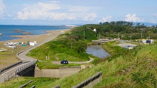 ![]() ![]() ![]() ![]() 「しおさいロード」に掛かる橋を渡ると、海岸の上の「展望塔」に出る。 ![]() 登ってこれから歩いてゆく「五軒長山」の方を眺める。 「自転車専用道路」をぶらぶらと歩いてゆく。釣り人が多い、何が釣れるのかな。 ![]() ![]() 倉部川にかかる橋までくると、向こうに「五軒丁山」が見えてくる。昔は「五軒丁山」だったが、ヤマップの山名は「五軒長山」に変わっている。 ![]() 砂山に登る道があるので登って行くと、「竹松海岸はまなす群生地」の立て札が建っている。「ハマナス」は咲いていた。残っていたというのが本当か」 ![]() ![]() ![]() ![]() 三角点がある。
