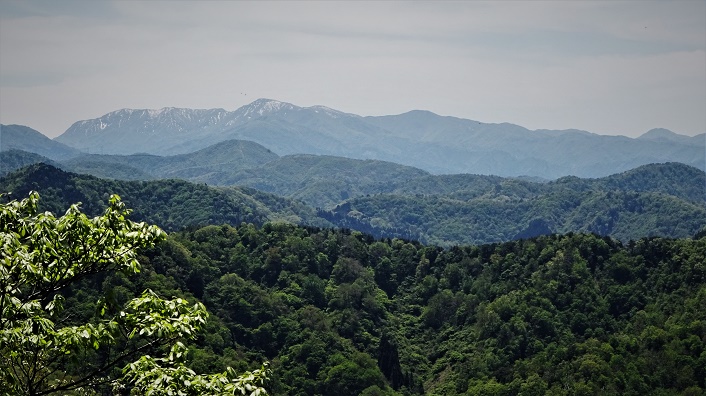 2020年05月08日(金)10回 小松近郊の低い藪っぽい山ばかり、ちょこちょこと徘徊している。3日連続で歩き、1日開けてその後4日連続である。今日はS女史と「小松火燈山」である。 ![]() 待ち合わせ場所の小松「なかうみの里」から「白山」が見える。手前左のなだらかな山は昨日歩いた「阿稜山」である。真ん中に見える山は、考えてみたら、5日前に歩いた「大岳山」の前半の山と思われる。今から登る「小松火燈山」は阿稜山の陰になっている。 ![]() 三坂トンネル小松市側に車を置く。トンネル右の道を少し入ると「火燈山登山口」の札があった。誰も登らない山だったが、登る人が出てきたようだ。9.15分。 ![]() トンネル右側の斜面をジグザグに登る。向こうに「小松火燈山」頂上が頭を出している。 ![]() 杉林の中を登る。以前よりも道は良くなった感じ。 ![]() 杉林を過ぎると峠は近い。荒れた感じが好きだな。 ![]() 青やピンクのテープが続いている。 ![]() 峠の上から、左の尾根に入る。テープが続きけもの道が続いている。 ![]() ![]() ![]() ノリウツギ ツクバネウツギ ヤマツツジ ![]() 「大笠山」と「笈岳」が見える、と小さい札が下がっている。 ![]() 「白山」が見える場所もある。案内札もある。 ![]() 一登りすると今度は「奥獅子吼山」が見えだす。左が「奥獅子吼山」で右が「入道山」。真ん中の山は「宿ノ岩山」と私が名付けた山である。最近は「北の峰」ともいうらしい。 ![]() 平らな平地の横を通ると、最後の急登となる。ロープが提げてある。登り切ると狭い頂上に登り着く。11.05分。 まず「白山」の展望。 ![]() ![]() ![]() 頂上で昼食。三角点がある。座っていても白山が見える。「小松虹蜺山学会」様の標識が多い。この山の開発をされているようだ。虹蜺とは「虹」の事らしい。 ![]()