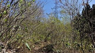 尾根の上に鉄塔の巡視路が走っている。左の鉄塔の方へ進む。降り道である。