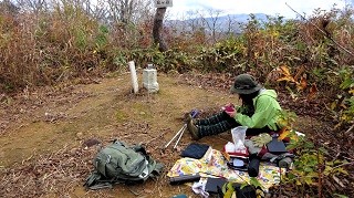 車まで戻り、あずま屋でコーヒーを沸かしてもらって、今日の半日、3カ所の三角点探訪は終わりだ。案外簡単に見つける事が出来た。