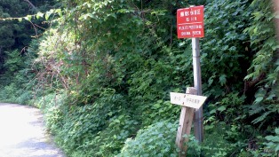 帰りに林道分岐の地点で、獅子吼の表示があるので入り込んでみる。月橋からの登山路を横切り、結構遠い。獅子吼のスキー場の近くまで行けたが、車は通行止めになっていた。登山者のみの入口が作ってあった。