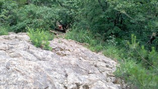 11.23分、池に到着。しばらく休んで崖を登り出す。何べんも登っているのに、今日は特に急な壁に感じる。鎖が下がっているので登れるが、そうでなければ登れないだろう。11.38分、崖を登り切る。ここから頂上まで4分。