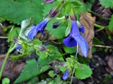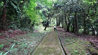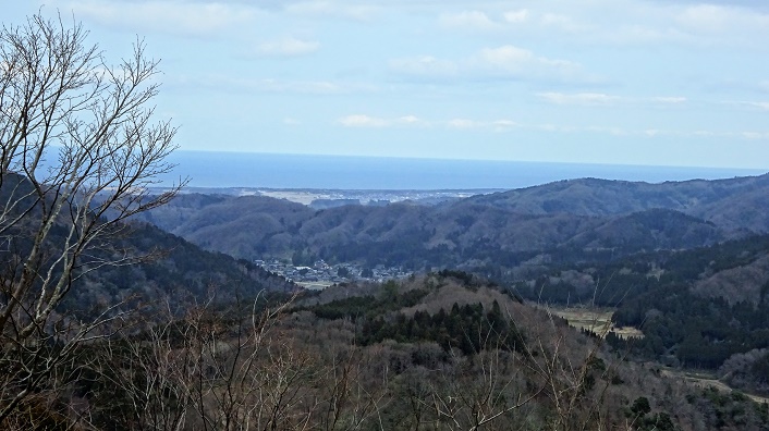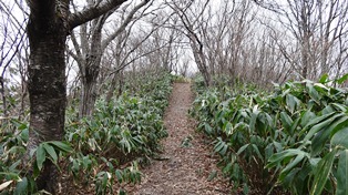 ![]() 三国山の三国とは「加賀」「能登」「越中」を云うらしい。海の方が見える。 ![]() 下にキャンプ場が見える。池が見える。 ![]() 近くに発電風車の立つ山が見える。宝達山だと思うが宝達山に風車はあったかな?。晴れていれば立山も見えるのだろうな。 ![]() 頂上より先へ進む道があるが、今回は戻って御山神社へ向かう。気持ちの良い稜線を歩く。 ![]() こんな低い所にブナの木がある。 ![]() 11.30分、御山神社に到着。この神社の社叢はブナとイヌシデ林で、石川県の天然記念物に指定されている、の看板がある。 ![]() 神社前の長い石段を降りると広い駐車場とトイレがある。林道を右に、フキノトウを採りながら戻ると、車を置いたところに出た。 **続きは下稿「臼が峰」へ** 2013年03月20日(祝)初歩き 三国山-臼ヶ峰-碁石ヶ峰巡りの② 三国山から降りて「臼が峰」に向かう。今日歩く三つの山は、いずれも石川県と富山県の県境にある。したがって私は石川県から登っているが、富山県側からも登る事が出来る。また近くの「宝達山」と「末森山」は完全に石川県の中に入っている。三国山から降りて一度国道159号線まで戻る。宝達山を過ぎ末森山を過ぎ、宝達志水町の手前、荻市信号を右に折れ一直線、所司原の村に着く。 ![]() 村の入口三叉路に「臼ヶ峰遊歩道」の標識があった。この標識は徒歩用であり、車は右の道を行き、村を抜けた所で、左に鋭角に戻る林道に入る。直ぐ「善正寺」を通る。菊桜で有名で名前は知っていたが、場所が此処だとは知らなかった。 ![]() さらに進むと分岐に「臼ヶ峰遊歩道」の標識ある。右に深田の村に入るとすぐ突き当たる。車一台だけならなんとか停められる。「臼ヶ峰往来」の標識がある。「文化庁指定の歴史の道百選」に選ばれた歩道の一部を、今日は往復する予定。12.40分着。 ![]() 立て札に依れば、万葉歌人大伴家持が、国司として越中に赴任中、この道を越えて気多大社に参拝した。その時詠んだ歌が「志乎路から 直越え来れば 羽咋の海 朝凪したり 船楫もかも(しをぢから ただこえくれば はくいのうみ あさなぎしたり ふねかじもがも)」である。それ以来この道は、越中、能登の大動脈になり、都に通ずる公道でもあった。 初めは竹林を行く。 ![]() 立て札に依れば、親鸞聖人が法然とともに流罪となり、越後に赴く際に、この臼ヶ峰に足を止めたと云う。近郷の村々には聖地として語り継がれている。 よく踏まれた溝状の道を行く。 ![]() 立て札に依れば、幕府時代は将軍が替わるごとに、幕府の巡検使の一行120名が、この道を通って加賀に入った。村々の古文書では12回に及ぶと云う。 アテの林を行く。 ![]() 13.05分、峠の上に到着。ここが越中と加賀の国境らしい。地蔵さんがある。 ![]() 峠の手前の、右上の藪の中に石碑がある。「親鸞聖人御旧跡」と彫ってある。親鸞聖人が野宿した場所で、お手植えの榊の木がある。女が榊の根に上がると血の雨が降る、と書いてあるぞ。 ![]() その上が高いピークのようなので、リュックを下に置いてよじ登って見たら、親鸞聖人の銅像の後ろに出た。正面に廻ったら富山県側から石段が登って来ていた。無理によじ登る必要は無かった。峠をそのまま進めばよかった。銅像よりに下に臼が峰の頂上園地が見下ろせる。ここが一番高いのでここを「臼が峰」頂上とする。 ![]() 階段を降りたら、大友家持の歌碑と雄略天皇の歌碑がある。さらに進むと「弁慶の袈裟掛の松」があった。太子堂は修復中でシートが半分掛かっている。休憩所もあり、大きな展望台がある。 ![]() 展望台に登る。晴れていれば「立山」が素晴らしいようだが今日は見えず。氷見の方から林道がここまで登って来ているようで、大きな駐車場が見える。平地が見えなくて、似たような山ばかり連なり、方向が判らなく山の名前が判らない。 ![]() 地蔵園地がある。地蔵がいっぱい並び一番上に大きな地蔵さんが三体ある。 ![]() この広い臼ヶ峰園地には誰一人散策者がいない。サザンカの木が数本花を付けている。 ![]() 銅像には登らず、峠の地蔵さんを通り、置いたリュックに着く。登ってきた臼ヶ峰往来を眺めて昼食。 ![]() 眺めていた道を降りる。途中に右に入る小道がある。登ってきた時は分岐標識が不明で寄らなかったが、入ってみたら「法然上人の丘」の碑があった。法然は親鸞の師である。 ![]() 14.00時、停めた車が見えてきた。 実に、雰囲気のあるいい街道だった。 この後は「碁石ヶ峰」へ向かう。 **続きは下稿「碁石ヶ峰」へ** 2013年03月20日(祝)初歩き 三国山-臼ヶ峰-「碁石ヶ峰」巡りの③ 臼が峰より降りて「碁石ヶ峰」へ向かう。一度国道159号線まで戻り北上。鹿島町高畠より県道304号線に入る。一直線で「石川県立自然公園碁石ヶ峰」に着く。14.35分。 ![]() ![]() キャンプ場を過ぎて売店・食堂前の駐車場に車を置く。「県立自然公園 碁石ヶ峯」の石碑がある。向うに見えるのは「石川県立鹿島少年自然の家」らしい。散策コース案内看板があり、目の