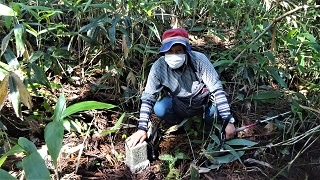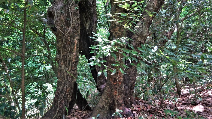 2022年9月25日(日)5回 「茶臼山」-「高峰」-「谷内山」 かほく市「うのけ総合公園」の周辺に、地理院地図を見ると。「丸山」「茶臼山」「鳶山」「高峰」「谷内山」の5山が載っている。しかも高峰以外の4山には三角点がある正式の山である。健康徘徊には持って来いだとすぐ出かけてきた。ヤマップのいちにぃ様の記録を参考にした。 ![]() うのけ総合公園は初めて、様子が判らんがトイレらしき建物がある駐車場に車を置く。陸上競技場だった・ ![]() まず一番近い「茶臼山」に行く。横の道を下りたら池に出て、向こうに「茶臼山」が見えた。 ![]() 村へ入って行くと「曼珠沙華」 ![]() 茶臼山は地図を見ると、頂上に水道施設がある。車道が頂上まで登っているが、その手前に山道が書き込んである。その道に入る。 ![]() 荒れ気味の山道。 ![]() 荒れた竹藪。 ![]() 地図を見て登り易い地点から、藪に入り込む。 ![]() 大きな貯水槽に登り着く。鉄柵に沿って正面へ。 ![]() 車道が上がって来ている。柵内に三角点が見えた。 ![]() 4等三角点。点名は「鉢伏」。標高「58.58m」 ![]() 車道を降りる。「鉢伏茶臼山遺跡」の標識があった。この山に弥生時代の竪穴住居の集落があったらしい。 2022年9月25日(日)5回 「茶臼山」-「高峰」-「谷内山」 ![]() 続いて2番目の「丸山」を目指す。そのまま県道59号高松津幡線を歩く。 車でも行けるが歩くのが目的。 道端にハギとアケビと百合。地図を見て「丸山」に登る地点と思われる所に来たが、山に入る道が無い。登山路があると勘違いしていた。皆様は藪漕ぎで登られた様だ。 ![]() ![]() ![]() 一人は老人、相棒は皮膚が弱いデリケートな藪漕ぎ嫌い。こちら側から登るの諦めて、駐車場まで戻り車で「丸山」の反対側から登る事にした。丸山に近い溜池の近くに車を置く。こちら側から山道を探したが無い。距離が身近いので藪漕ぎを試みたがあえなくリタイヤ。二つ目の「丸山・3等三角点・63m」は諦めてまたの機会に。![]() 車に乗って3番目の「高峰」を目指す。うのけ総合公園の横から県道223号線で気屋峠を目指す。峠の手前に「高峰林道」の入口があったので車を置く。車でも入り込めるが、歩くのが目的。 ![]() 海が案外近いのだな。林道は舗装してある部分が多い。「高峰」と思われるピークに突き当たり、林道は裾を捲いてゆく。ここも覗いたが登山路が無い。山裾を周ったら、ヤマップの地図では登頂が認定された。頂上より100m以内に到着したらしい。 ![]() 林道の分岐の地面に座り込み昼食。人も車も通らない林道である。ここからは分岐の突き当り林道で、「谷内山」を目指す。ここまでは車で乗り入れ可能。 2022年9月25日(日)5回 「茶臼山」-「高峰」-「谷内山」 ![]() 林道は舗装は無くなり、狭くて車の通れない道となる。 ![]() 地図を見て居て「谷内山」が近くなった地点より、また藪漕ぎに突入。 ![]() 荷物は残して空身。三角点まで300mくらい。地図に境界線の記入がある。かほく市と津幡町の境界線らしい。境界線は踏み跡の道がある様だ。 ![]() 酷い藪も無くすんなりと三角点到着。ここが谷内山。「3等三角点・多田・101.69m」。多田は近くの町名。 ![]() 展望は無しで直ぐ下山開始。同じ道を降りる。 ![]() 赤い杭は境を示すもの。何とか林道まで降りる。 ![]() ひたすらに林道を戻る。向こうに見えてきたのか「高峰」のピークだろう。標高143m。三角点無し。今日歩いた山で一番高い。最近使っているヤマップでは、登頂と認定された。 セイタカアワダチソウ 赤い実 アキギリ ![]() ![]() ![]() ![]() 林道入口の車が見えてきた。なかなか遠かった。もう一つの5番目の「鳶山・上山田・33m」は時間が無くてまたの機会にした。 「丸山」は100m以内に近づけず登頂とはならなかったが「茶臼山・高峰・谷内山」と、登った山が3山増えたぞ。 ■次回登山は、10/1福井の「鷹取山-六呂瀬山」へ■ 2021年05月30日(日)4回 小熊の八幡神社より「殿山」往復 この間から石川富山の県境辺りをうろついている。今日は津幡町の「三つのピーク」を踏破に来た。ヤマップでいずれも山として認定されており、地理院地図にも山名が記載されている。 ![]() 津幡町の「小熊・こんま」という集落の側の車道に車を置く。集落の「八幡神社」にイヌシデと云う木の県内一ノ巨木があるとの事である。9.30分。 ![]() 荷物を持たずに集落に入り、地図の神社マークを見て神社を探す。 ![]() はずれにあった。 ![]() 巨木のある神社である。樹木の知識がない。 鳥居の横の木もイヌシデらしい。 鳥居の横に山に入る道がある。地理院地図には山に入る道の記入は無い。「殿山189」と地図に載っている。 ![]() ![]() 墓地までは道があったが、その先は段々と消えてなくなった。 ![]() 背丈ほどの笹藪になった。前を歩く女史が藪の中で見えなくなる。声を頼りに後を追う。大分頑張ってみたが、登っても三角点もないし展望もない。 ![]() 諦めてここで敗退を決定。しかしヤマップでは頂上より100m以内を通過したと認定され、「殿山
