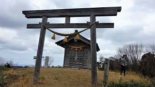 ![]() 松が植えてあり、鎖で囲んだ場所がある。中に岩が幾つか転がっている。思い出した。五つの石があるので五石→碁石と云うようになった。この五つの石が御神体らしい。 ![]() 登ってきた北方面に白い大きな風車。 ![]() その右側の東方面に、微かに海岸線が見える。富山湾らしい。山名展望図に寄れば、富山湾を隔てて立山連峰が繋がるようだ。 ![]() 山名展望図に寄れば左より、朝日・白馬・五龍・剣・立山・薬師・槍穂高、さらに乗鞍・御嶽・白山・医王山まですべて見えるらしい。 頂上より降りて火駐車場の先より、風力発電機に登る。故障らしくプロペラは廻っていない。 ![]() プロペラより尾根伝いに遊歩道を進む。気持ちの良い道である。 ![]() 下に自然公園が見下ろせる所がある。頂上コースを降りようと思ったが、さらに先へ進み、原山峠より見晴台コースを歩こうと思って進む。見晴台コースが登って来ている地点まで来て、疲れて原山峠まで行くのは止めて、見晴台コースを少年自然の家へ降りた。 ![]() 鹿島少年の家の前は、雪のある時はゲレンデになるようだ。ゲレンデをぶらぶらと降りると車を置いた駐車場に到着。16.35分。 ![]() 頂上三角点の自分撮り記念撮影。予定通り口能登にある三山を歩いて大満足。 **次回登山は、3/23「能登七尾の二山」へ** |