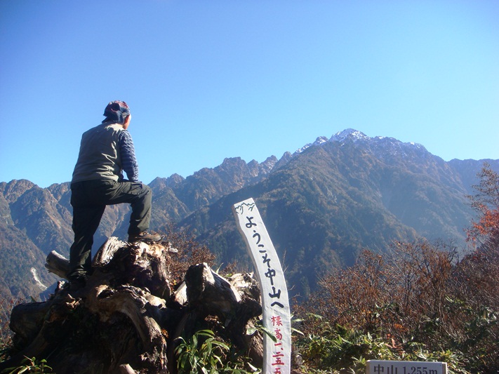 ![]() 三角点は頂上広場のふちにあり、気が付かぬ人が多いようだ。 頂上広場真ん中の古株に登ったら、海の方が見えた・ ![]() ![]() ![]() 12.20分に下山開始。東小糸谷の方へ降りる。12.40分に、「クズバ山」への分岐を通過。谷迄降りて「東小糸谷」の流れに沿うて降りる。途中で三度流れを渡る。 ![]() 14.00時に「立山川」の河原に降り立つ。 ![]() ぶらぶらと車道を歩き、キャンプ場を抜ける。途中に剣岳への登山口がある。 ![]() この標識のの向こうに「剣岳」がそびえているはずだが、下の方しか見えない。14.40分に車に到着。 「立山千年杉」の続く山歩きは、なかなか良かった。 中山「YAMAP」による記録 ■活動日 2018/10/14(日) 08.56-14.43 ■活動時間 5時間24分 Ⓢスタート8.56→2時間27分→中山11.23-12.18(55分)→ 2時間25分→Ⓖゴール14.43 ■活動距離 4.7km ■高低差 563m ■累積標高上り/下り 562m/573m ■次回登山は、10/16別山「チブリ尾根」へ■ 2007年11月07日(水)初登山 番場島入口-中山頂上-東小糸谷口 「中山」は剣岳の展望台として有名である。以前にH君が、メールで写真を送ってきて、今度は紅葉の頃に登りたいと書いてきた。K君も以前から紅葉の頃がお勧めと云っていた。調べてみると、私でも簡単に登れそうなのでK君に案内を頼む。 6.00時に家を出て、6.40分、金沢自宅のK君を乗せて高速道路に乗る。立山インターで降りる。馬場島は剣岳の登山口として有名で、交通標識が完備。迷うことは無い。上市町を通って山に向かう。あとは一本道。途中、早月川に掛かる橋の上で車を留め、剣岳の写真を撮る。心が躍る。 ![]() ![]() 突き当たりの馬場島に、8.50分に到着。「剣岳」の碑があり、「馬場島登山口・剣岳青少年旅行村」と書いてある。馬場島から、こんなに直接剣岳が眺められるとは思っていなかった。 ![]() 馬場島の入り口、右から流れ込む立山川に渡る橋の袂に、登山口の駐車場がある。先着は一台。辺りは紅葉で美しい。遭難碑の横から登山路に入る。いきなりの急坂のジグザク道である。いきなり大きな「立山杉」が現れて楽しい。 左手に、木々の間から剣岳が見える。急坂のジグザグ道の回り角を、K君が数えている。後で聞いたら、頂上まで回り角は180角あるそうだ。とにかくジグザグの急登である。 ![]() それにしても立山杉が多い。ゴツゴツした巨木の杉を眺めていると、力を与えられるような気がする。元気が涌いてくる。 ![]() ![]() ![]() 10.20分、尾根の上到着。ここにも立山杉が多い。ここを「五本杉ノ平」というらしい。ここより緩やかな稜線歩きとなり、瘤を2.3越えると突然に中山頂上に到着。10.50分。歩き出して2時間掛かった。 先着は男性2名。丸い頂上の真ん中に木が一本。盛り上った木の根っこ。快晴。剣岳の頂上より右に前剣。それから先は手前のクズハ山に隠れている。クズハ山の右は大日岳だろう。頂上より左にギザギザの稜線が続く。一番下がった部分が大窓。ギザギザにはそれぞれ名前が有る様だ。名前を書いたプレートがあり確認。三角点は頂上の隅、下山口の方にある。 ![]() 頂上に雪がある。足元から早月尾根が、頂上まで続いている。あそこに登山路が続いているらしい。剣岳はうんと若い頃、立山の方から一度だけ登ったことがある。K君カッコイイ。 ![]() 二人しかいなかった頂上に、お天気に誘われたか、続々と登山者が到着。30人近くになった。人気の山なのだ。犬まで2匹も登ってきた。 ![]() ![]() 辺りを眺めながら、ゆっくりと昼食。西の方には上市の町の向うに平野が広がっている。360度のパノラマを飽かずに眺める。 ![]() 2時間も滞在していて、12.45分に下山を始める。東小糸谷の方へ降りる。雲ひとつ無かったのに、この頃から突然にどこからか雲が涌いてきた。この後、あっという間に雲が広がったようで、下に降りたらもう山は見えなかった。 ![]() ![]() 国土地理院の地図に、登りも下りも登山路が記入してある。東小糸谷のこちらの方が楽で短いような気がする。沢を3度渡ると、立山川の広い河原に降り立つ。13.45分、1時間でここまで来た。工事用の橋を渡って、対岸の林道をぶらぶらと車まで歩く。 ![]() 真っ直ぐ歩けば、20分位で車に着くが、我々は途中の旅行村のキャンプ場で、お湯を沸かして午後のコーヒーと抹茶。結局1時間かかって車に到着。14.45分。 上市町の「アルプスの湯」に入って帰る。 登山口より頂上まで2時間。頂上より小糸谷登山口まで1時間。 |