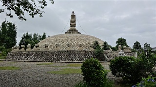 あずま屋に登ると、氷見の街が一望できる。13.35分。 ![]() 富山湾の向こうに能登半島の先端が伸びている。 ![]() ![]() 同じ道で14.20分に万葉ラインまで戻り、さらに進むと、14.35分に「佛石寺」への分岐に到着。入り込み登って行くと、佛石寺があるが寺へは寄らず、上を目指す。 ![]() 頂上に「佛舎利宝塔」がある。この辺りが一番高いので、地理院地図ではここが「鉢伏山」となっている。大きな宝塔の周りを一周して下山開始。アジサイがいっぱい植えてある。 ![]() ![]() ![]() ![]() ![]() ![]() ![]() 佛石寺のすぐ下に「平和の鐘」があり、営業している食堂がある。観光の車が何台も留まっている。ペットボトルを一本買って下山開始。万葉ラインの車道を城山の駐車場までまっすぐ歩く予定。 ![]() 佛石寺より少し下がった所に林道が分岐している。地図を見るとこの先のピークに三角点がある事になっている。調べに行きたかったが、関係者以外立入禁止の標識があるので入れない。