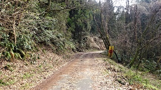 ![]() 2等三角点がある。見晴らしの良い城山である。氷見の街が見える。 高岡市の方も良く見える。晴れていれば立山も見えるだろう。 ![]() 駐車場まで戻り、万葉ラインを歩き出す。11.05分に小さな広場に出る。山の方に大伴家持の像が見える。像の後ろから「二上山」に登る道が続いている。 ![]() ![]() 11.15分に「二上山」の頂上に登り着く。真ん中に石の祠がある。展望は無し。標高274m。ここが最高地点である。頂上から先へ歩道が続いている。「中部北陸自然歩道」の標識がある。 ![]() 万葉ラインに降り立ち進むと、左に「大平線」という林道が分岐している。11.30分。看板があり「弘源禅寺」という寺があるらしい。 ![]() 5分ほどで広場に出る。右上に弘源禅寺の「毘沙門天堂」があるらしい。登らなかった。 ![]() 弘源禅寺は左の坂を降りて行った広場にある様だ。赤い紅葉の木のあるのは、入口の標識。11.35分。 ![]() ここから「摩頂山」に登る予定だが、遊歩道が無く、もちろん案内板などない。ヤマップに大体のコースの記入があるのが、頼みである。林道から離れて山へ入る道を進む。 ![]() すぐ右に広場があり、元はお寺のようで、石仏が並べてある。地図を見るとこの裏山辺りがピークのようだ。探したがここには登り口は無かった。 ![]() 林道を又進んだら、竹藪の中に道らしきものを発見。目印の赤い布が続いて居る様だ。11.45分。 ![]() 赤い布を頼りに竹藪の中を進み、最後に急坂の滑る斜面を登り切ったら、「摩頂山」の標識があった。やはり登る人入る様だ。12.00時。丸い尖ったピークのようだが、展望なし、何も見えない。すぐ下山開始。 摩頂山から降りて弘源禅寺にも寄ってみた。誰も居無い様だ。 ![]() ![]() ![]() ![]() 万葉ラインまで戻って少し歩くと、12.30分に「中部北陸自然歩道」の標識に出た。ここから山道に入り、「大師ヶ岳」を越えて、氷見の国泰寺から雨晴海岸まで続いて居る様だ。 地理院地図には登山路の記入は無いが、高岡市と氷見市の、市境の尾根を上り下りしながら進んでゆく様だ。 ![]() 誰も通らず竹藪の中の道を進む。実に雰囲気の良い遊歩道である。 ![]() ![]() 頂上一つ手前のピークにあずま屋があった。遊歩道は東屋の中を通っている。13.05分。休憩昼食。 ![]() 一度降って更に登り切った所が「大師ヶ岳」の頂上だった。鉄塔があり、ここにもあずま屋があった。この頂上に三等三角点がある有るはずだが、見逃した。あずま屋の下あたりにあると思われる。残念。