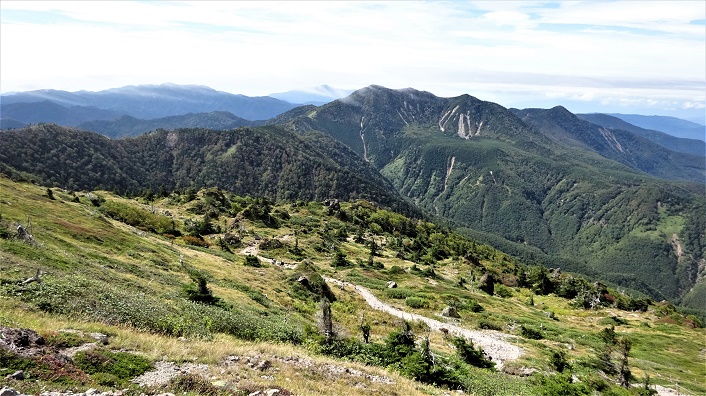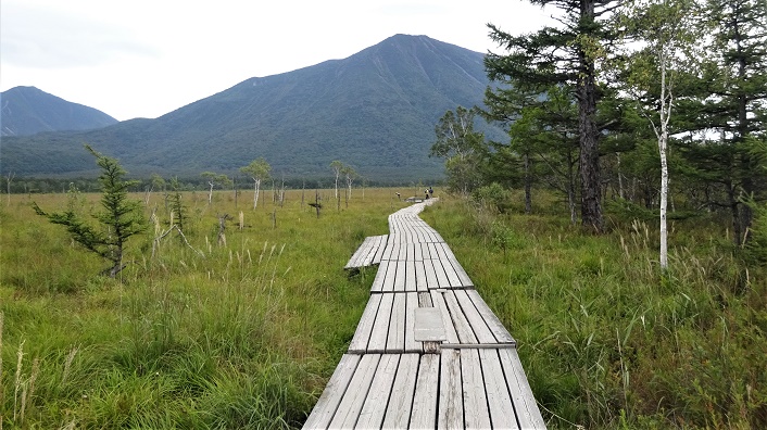 2019年09月21‐22日(土日) 「戦場ヶ原」と「日光白根山」登頂 第1日目 9月21日 8月の初めに「尾瀬」を歩いて「至仏山」に挑戦した。案外スムーズに鳩待峠まで入り込めた。その時地図を眺めていて「日光白根山」が尾瀬と非常に近い事に気が付いた。尾瀬の登り口「鳩待峠」と、日光白根山の登り口の「ロープウェイ駅」が、群馬県片品村という同じ住所だった。これならば案外楽に日光白根山に、登れるかもしれないと相談したら、SN女性コンビのほかに、М女史の合計4人パーティになった。日光白根山ロープウェイのある、丸沼高原のペンションを予約し、1日目の午後は日光の「戦場ヶ原」を散策することになった。 小松市を4.00時に出発。前回の尾瀬行きと同じコース。北陸道から関越道に入り、沼田ICで降り国道120号線を走る。尾瀬への分岐を過ぎ、丸沼高原のロープウェイ乗り場を過ぎ、金精峠のトンネルを抜け栃木県に入る。この車道は濃霧で真っ白、ノロノロ運転する。トンネルの中まで霧が懸かり怖い位。3連休であるが台風が近づいている。その影響かなと心配になる。峠から降りてくると段々と霧が晴れてきて一安心。右下に「湯ノ湖」らしきものが見え、バス停があり「湯滝」への分岐を降りてゆく。途中で駐車料金500円を支払って広い駐車場に車を停める。10.40分。 ここから歩いて「戦場ヶ原」を横切り、帰りはバスで戻る予定。「戦場ヶ原」の名前の由来が、原の中にあったので、面白いから載せた。このページも赤城山と白根山が合併した。 ![]() ![]() トイレ棟があり、登山客と釣り客の車はここに留めるように指定されている。湯滝見物だけの車の駐車場は向かい側にある。隣の車が登山者らしいので話をしたら、登山でなくて釣り人だった。釣りをしていて足を滑らし濡れたので着替えに戻ったらしい。鱒が釣れるらしい。 用意をして、リュックを担いで出発。10.55分。 駐車場の先を150mほど進んだら「湯滝」の下の観瀑台に着いた。凄い滝なので度肝を抜かされた。この上の「湯ノ湖」より長さ110mを滑り落ちているらしい。 ![]() ![]() 滑り落ちる滝なので、滝壺は無く、そのまま「湯川」として戦場ヶ原を横切って居る様だ。トレッキングコースも大体この川に沿って続いて居る様だ。所どころに釣り客がいる。 ![]() ![]() 初めは針葉樹の森を行く。 11.20分に「小滝」を通過。 ![]() 木道が敷いてあり、歩きやすい。 ![]() 11.50分に「泉門池・いずみやどいけ」に到着。ベンチががあるので昼食。ここからいよいよ「戦場ヶ原」が始まるらしい。向こうに見える山は「男体山」らしい。 ![]() 戦場ヶ原に入ったぞ。「男体山」。 ![]() ![]() ![]() 「男体山」と「大真名子山」 ![]() ![]() ![]() ![]() ウメバチソウ ホザキシモツケ 「小真名子山」と「太郎山」だろうな。 ![]() ![]() ![]() ![]() 「赤沼分岐」の手前のベンチで待ち合わせ。足が遅いので泉門池での食事の後、後かたずけをしなくて先に出発していた。いつまでも追いつかれないので、3人は道を間違えたのかな?と心配になっていた。やっと合流。話を聞いたら、いつまでも追いつかないので、道を間違えたか?と、3人も考えたらしい。13.30分。 ![]() ここで「戦場ヶ原」が終わるので、ここから赤沼のバス停へ出て戻る予定だったが、思ったより早く着いたので、この先の「竜頭の滝」まで歩く事に決定。ここからは樹林帯となる。木道ではなく土の散策路となる。 「竜頭の滝」とはどんな滝なのか知らなかった。散策路の横に滝が現れた。良く判らなかったが、ここから滝が始まって居る様だ。あとでわかったが、ここは龍の尻尾の部分だった。 ![]() さらに降ると滝の上を、車道の橋が架かっていた。「竜頭の橋」の上から下流に向かってシャッターを切る。ずーっと先に「中禅寺湖」が見える。滅茶苦茶に長い滝だ。210mあるという。まだ龍の胴体部分だ。 ![]() さらに降ると竜頭の滝の横の展望台に出た。ここもまだ胴体部分だ。 ![]() さらに降ると駐車場があり「竜頭之茶屋」があった。茶屋の横が観瀑台になっていた。ここが竜頭の滝の「頭の部分」だ。そう云われれば龍の頭に見えない事もない。14.20分。 ![]() ![]() 14.40分に、竜頭の滝駅よりバスに乗り、湯滝バス亭で降り、滝駐車場に降りてゆく。15.10分着。 ![]() 15.50分に今日の宿、丸沼高原のペンションに到着。 ![]() 連休なので混んでいるかと思っていたが、宿泊者は我々4人だけだった。雰囲気の良い食堂で夕食。朝が早かったので早々に寝込んだ。 第2日目 9月22日 ![]() 今日は「日光白根山」に挑戦する日だ。台風が近づいている。夕刻より雨らしいが、それまでは降らぬようだ。有難い。7.30分にロープウェイが始発なので、朝の食事を7時前に早めてくれた。ここからロープウェイ乗り場まで5分も掛からない。 ![]() 7.30分。乗り場駐車場には、もう結構車が多い。駐車場は無料。 ![]() ロープウェイはゴンドラなので、待たなくて次から次へとすぐ乗れた。 ![]() 広いロープウェイ山頂は、足湯など、いろいろ建