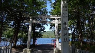 2014年07月28日(月)1回 大沼より「赤城山」一周・初登山 7月28日 赤城山 社中の発表会も無事終わり、しばらくは夏休み。「燕岳」はお天気に恵まれ、大展望が楽しめた。そしてすぐ今度は、温泉友達とドライブを兼ねて「赤城山」を登る予定。「赤城山」は日本百名山に入っている。国定忠治の名せりふ「赤城の山も今宵限り」の赤城山である。 調べてみると群馬県の赤城山は、昔の噴火口「大沼」を中心にして、周りに八ッの頂上を持つ山の総称らしい。最高峰は「黒檜山・クロビサン」である。ここだけなら簡単に登れそうだ。標高差は500m位だ。 27日、北陸道から、長岡で関越道に入り群馬県を目指す。なかなか遠い。谷川岳の麓を行く。尾瀬へ入った時も通った。日光へ行った時も通った。赤城ICで降りて、近くの利根川畔の保養所に泊まる。 ![]() 翌朝8.30分に宿を出て、国道353号線から、「上毛三山パノラマ街道」を登る。ぐんぐん高度を上げジグザグ道を登り着いたら、大沼湖畔の広い駐車場に着いた。平日でガラガラである。トイレがある。向こうに見えるのが黒檜山であそこへ直接登り、手前の駒ヶ岳を経由して直接この駐車場に降りる予定。 ![]() リュックをかずいて湖畔の車道を進むと、赤い橋があり、大沼に突き出た地点に赤城神社が見えた。 ![]() 橋を渡って赤城神社参拝。9.40分。赤い大きな社殿。背景の山が赤城山最高峰の黒檜山である。 ![]() 神社の裏の駐車場から車道に戻り、しばらく歩くと右に登山口がある。黒檜山1.1Kmの標識がある。9.55分登り出す。岩のゴロゴロした登山路である。 10.15分、右側が絶壁で大沼が見下ろせる。向かいの鉄塔が何本も立っている山は「地蔵岳」らしい。 ![]() ![]() 猫岩と云う標識がある。遠くから眺めた時、絶壁の中腹が大きな岩になっていたから、あの岩が猫岩なのだろうと思う。 ![]() 黒い檜と云うだけあって、大シラビソの樹林の中の、岩のゴロゴロした登山路を行く。時々人が追い越してゆく。 また大沼が望めた。なかなかの急坂で辛い。 ![]() ![]() 11.45分。急坂が済むと緩やかになり、右に分岐路がある。頂上は分岐を入った所に有る。5分で頂上到着。広くて真ん中に三角点が在る。周りに木が生えており思っていた程展望が利かない。展望台2分の→がある。 ![]()