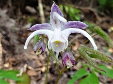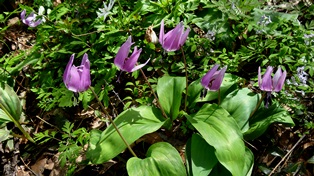 2015年04月18日(土)1回 勝山駅-「小鹿山」-比島駅-北谷福寿草 二日前、K君S女史と3人で「野見ヶ岳」へ登った。その時今度の日曜日は、丁度「加賀里山逍遥の会」の7周年に当たるので「奥城山」に決めた。そして土曜日はN氏一行は「バンビライン」を計画していると聞いた。相棒に俺達も「バンビライン」を歩こうか?と聞いたら、それは何処だ?。そんなちゃんとした山名でなく横文字のラインなんか歩きたくないと云った。 「バンビライン」は、私は知っていたし調べた事もある。カタクリが有名で一度は歩きたいと思っていた。しかしいつもカタクリの時期を逃して、歩きそびれていた。今年ももうカタクリの時期は終わったかと思っていたが、ネットで調べたら19日の日曜日が今年の「カタクリまつり」になっていた。時期がちょうど良いようだ。 ![]() 福井北ICから所々中部縦貫自動車道が繋がって、勝山市まで近くなった。1時間ほどで「えちぜん鉄道勝山駅」の駅裏の駐車場に着いた。10.30分。向うに越前大日山が見えてまだ白い。ここは「千代田」と云う地区らしく、バンビラインの標識には千代田と書いてある。 ![]() 駅裏の駐車場が、バンビライン登り口になっている。「勝山バンビラインカタクリまつり四月第3日曜日」の看板がある。明日だ。明日は賑やかなのだろう。10.35分出発。 ![]() 少し登ると白い花が咲いていた。「ハクサンハタザオ」の標識が付けてある。 ![]() このエンゴサクには「ミチノクエンゴサク」の標識が付けてある。小型のエンゴサクだな。 ![]() 少しじめじめの登山路を登って行くと「カタクリ」が現れ出した。大型のカタクリが多い。 ![]() 白いカタクリがあった。白いのを見るのは久しぶりだ。 ![]() 白いカタクリが五つまとまって咲いていた。 ![]() ![]() ![]() ![]() ![]() ![]() ヤマブキ スミレ エンレイソウ ![]() 11.00時に尾根の突端の「第1展望台」に登り着く。櫻の木の下、九頭竜川が見える。その向こうに勝山大仏の建物が見える。その上は「大師山」だろう。202.1mと登り口看板に書いてあった。 第1展望台の下と、その上あたりがカタクリの群生地である。本格的な尾根歩きになるとカタクリは無くなる。コバイモの標識を見付け探したら、少しあった。 ![]() ![]() ![]() ![]() ユキツバキ コバイモ 白イカリソウ ![]() ![]() ![]() アズマイチゲ エンゴサク 11.30分に「第2展望台」の標識の建つピークに着いた。勝山の町が見下ろせる。標高355.9m。 ![]() 左の方には「大日山」。越前甲から加賀甲まで見えるようだ。 ![]() 右の方には「経ヶ岳」。ゲレンデが見えるのが「報恩寺山」。その下が「大師山」。 ![]() 報恩寺山の左に「大長山」「取立山」と続き、低い所から「白山」が頭を出している。御前峰と大汝峰だろう。展望台にある写真看板を参考にしましたから、たぶん間違いないと思う。 ![]() ![]() ![]() ![]() 尾根を進むと「シュンラン」と「ピンクのイカリソウ」があった。 ![]() 12.00時に三角点のあるピークに着いた。