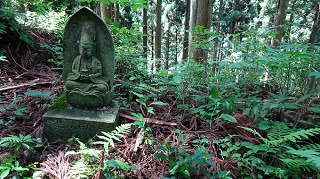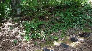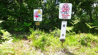 2024年07月27日(土)6回 村岡神社より「御立山」一周 去年11月の終わりに「御立山」に登りに行ったら、熊が出るというので、鯖江の西山公園へ行った。今回ヤマップに登山記録が多数あり、我々もリベンジに出かけた。福井北インターから中部縦貫自動車道の無料区間を走り、勝山インターで降りて郡町の村岡神社の登山口に向かう。 村岡神社小学校の隣に「村岡小・村岡山駐車場」の案内板のある駐車場に車を置く。御立山は「村岡山」とも云うらしい。今日は金沢のA様と車2台で来ている。 小学校の反対側、駐車場隣は「横倉鉱泉」で宿泊施設だな。 横倉鉱泉の前に「村岡神社」の入口。 その横に「四国八十八ヶ所、登り口」の標識。ここから頂上まで四国八十八ケ所の石仏があるらしい。また頂上へ反対側から登る道に「西国三十三ケ所霊場」の石仏があるらしい。 まず「村岡神社」に詣でる。 初めて来ました。よろしくお願いいたします。 神社の右に降りると水場がある。飲むようになっている。ここから登山路に入るつもりで、水路に沿って登ったら道が無くなった。?と右へ藪を漕いだら登山路に出た。下に水場が見えた。注意不足だ反省。 初めは中々の急坂。階段が続く。四国八十八ヶ所の石仏が並ぶ。これは14番札所の石仏。 15番札所の石仏。 24番札所の石仏 これは何番だ? それぞれに寄進者がいる。 28番札所の石仏。先着2人が待っていた。時々安全確認の為に待ってくれる。すみません。 今度は頂上で待っていてください。 この辺りはなだらかな道だな。四国八十八ヶ所霊場はすべて訪れた。自動車で10回以上も通った車遍路。 各霊場で白衣に着替え、般若心経を唱え御朱印を貰った。 突然に村岡城跡の大きな広場に出た。 勝山の方が見える。遠くに大きな山も見える。 土橋を渡ってさらに一番高い広場に登る。大きな忠魂碑が建っている。 最上広場の右隅の日陰のベンチで、仲間が待っていた。12.20分。すぐ昼食。暑い。冷たいノンアルが出てきて乾杯。身に染みる。 ゆっくり休んで広場左隅の、櫓台上の三角点へ。 ここが「御立山」の頂上である。 「3等三角点・点名は御立山・標高は301m」 三角点の後ろに周ると「恐竜博物館」のドームが目の下に見える。後ろの遠い山は「大日山」だな。 まさに恐竜の卵。 恐竜博物館は昔に行った事がある。こんなドームが在ったかな。 博物館の東の方面。白山があるのかな。 それにしても変わった珍しい景色だな。 大きな忠魂碑。 下山に先立ち記念撮影。A女史。 S女史。13.20分。 今日は我々3人だけで他に登山者無し。暑いものね。 今日は登り口反対側の、松岡町寺尾の方へ降りる。 下の広場より勝山方面。小鹿山か? 下の広場を横切り降りて行く。 こちらの道の方が歩きやすいな。 半分ほど降りた地点でも博物館が見えた。 白山の方は雲が掛る。 下に着いた様だ。西国三十三ヶ所の標識あり。 舗装道路に出た。「村岡山城跡・戦国時代、平泉寺軍とこの山に籠った一揆軍が衝突し、平泉寺軍の朝倉景鏡が討たれて死亡。この山で一揆軍が勝利したので「勝山」の地名が生まれた」 山裾の車道を歩き、駐車場まで戻る。 安全地蔵尊の花。 御立山の山裾を歩いて、村岡小学校の運動場まで戻ってきた。 村岡小学校の前に銅像。朝倉景鏡がここで討ち死に下らしい。 14.50分。駐車場に戻る。隣の横倉鉱泉に氷河時代と云う「かき氷」の出店が出来ている。カキ氷を久しぶりに食べた。大変美味しかったが、結構値段が高いのでビックリ。A女史とここでお別れ。谷峠越で白峰経由で帰って行った。 ■次回登山は、7/31能登の「宝達山」へ■ 2023年11月03日(金)5回 白山神社より「三室山」一周 この間「小鹿山」に登った。いろいろ調べていたら近くに「三室山」と「御立山」があるのを見付けた。さっそく登りに来た。 ナビ一発で、登山口の春日神社に着いた。バンビラインの登り口の道を、そのまま走った小さな神社だった。地理院地図には山の名前は無い。神社マークと三角点マークだけがある。神社入口の空き地に車を置く。道路から見た春日神社。住所は勝山市遅羽町ほう崎。 神社の左に山に入る階段が見える。案内板によれば「ここは、縄文時代の住居跡の遺る「三室遺跡」であり、奈良時代は神の住む山「神奈備の三室山」として崇められ、戦国時代の「三室山城跡」である。 可愛らしい案内板。氏神春日神社の後ろをジグザグに登り、方位版のある展望台。ここは三室山城址でもある。尾根を歩いて二つ目の展望台。ここから神奈備の磐座の方へ降りる。そして縄文時代の遺跡を通って一周の予定。荷物は置いて空身で行く。10時。 氏神春日神社の横を登る。 ジグザク道。 ジグザク道。 登って来た方面。鳥居が見える。 15分くらいで、頂上の三角点に到着。「4等三角点・三室山・183m」 三室山城跡の石碑。報恩寺山と経ヶ岳。下に勝山城博物館。 方位版。 尾根伝いに次の展望台へ。 展望台到着。 大師山。麓に越前大仏殿。 大日山の方面。町の向こうの