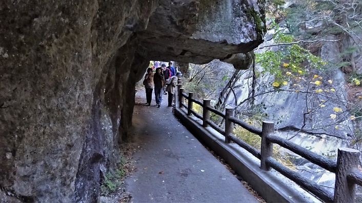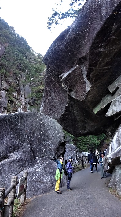 2017年11月11-12日(土日)2回 一日目「昇仙峡」 なんだかここの所立て続けに、女性コンビの百名山に連れて行って♪のリクエストに応えて、楽な日本百名山ばかり歩いている。自分としても80才で、もう先が無いと思うから、楽しんで同行させてもらっている。今回は傘寿記念の、山梨県の「大菩薩嶺」である。女性コンビと小松を6.00時に出発。富山より神岡、平湯から松本へ、中央道で山梨県に入り、双葉スマートICで昇仙峡ラインを走る。12.25分に「長とろ橋」に到着。 今回は明日の「大菩薩嶺」の前の半日をここから始まる「昇仙峡」を歩く予定。以前にドライブで、昇仙峡ロープウェーに乗って、展望台付近まで歩いた覚えがある。今回はその時歩かなかった渓谷を歩く予定。初めてである。 「長とろ橋」を渡った所に無料駐車場がある。ここから「仙娥滝」辺りまでを往復する。平日は車両は川上に向かって一方通行、今日は土曜日で車両通行止め。往復は10kmもありそうだな。12.35分に歩き出す。 ![]() ![]() ![]() 奇岩奇石が続く。 「オットセイ石」 ![]() 向こうの方に見えるのが「富士石」 ![]() 上の方にそびえる「大佛岩」 ![]() 「松茸石」 その他色々とある。 途中「天鼓林」と呼ばれる地点で昼食。13.30分。もう一時間もぶらぶらと登って来たようだ。 ![]() 「羅漢寺」に渡る吊り橋がある。羅漢寺に木造の五百羅漢像があるというので見に行く。154体が残っているとの事であるが、収蔵庫の入り口から覗き込むだけで、よく見えなかった。 ![]() ![]() ![]() 「覚円峰」と言うらしい。 ![]() ![]() 「石門」 上の岩と下の岩の間に隙間がある。上の岩は下の岩には乗っていない。 段々と険しくなる。 ![]() ![]() ![]() 14.40分、2時間も歩いてようやく「仙娥滝」に到着。 今日はここまで。ここから引き返す。この先急坂を登りきると、賑やかな所に出てロープウェーの駅がある様だ。 引き返す降りは、坂になっているので、歩きやすい。 ![]() ![]() ![]() ![]() ![]() 16.00時に駐車場まで戻り着く。明日の大菩薩嶺のため、登山林道の途中の「甲斐の国大和自然學校」を予約してある。林間学校の施設のようで、食事は出ない。甲府市で食事を済ませ、食料調達して18.30分に宿に着いた。途中大きな富士山が見え歓声を上げた。明日も見えるように―。 昇仙峡「YAMAP」記録 ■活動日 2017/11/11(土) 12.32-16.03 ■活動時間 3時間31分 スタート12.32→2時間13分→仙娥滝14.43(5分)→ 1時間15分→ゴール16.03 ■活動距離 9.5km ■高低差 255m ■累積標高上り/下り 844m/847m 二日目「大菩薩嶺」 ネットで予約した「大和自然學校」は地元の林間学校の施設らしい。布団の敷き方や終い方、掃除の仕方が事細かく張り出してあり、一般人もそれに従わねばならぬ。5人以上だと食事も出るようだ。部屋では食事禁止だが、広い食堂は使わせてもらえる。80歳のお祝いをすると言うので食堂へ行ったら、いつの間にか用意してあったお祝い品を頂き、所長さんよりグラスワインを頂き、真っ赤に酔っぱらって寝込んでしまった。有難う御座いました。 ![]() 6時に起床して部屋掃除。食堂で持ち込んだおにぎりを食べ、7.20分に出発。この宿は甲斐大和駅の近くより、登山口の上日川峠へ登る県道218号にあり、宿を出てそのまま山へ向かって登る。宿近くは紅葉しているが、上へ登ると紅葉は終わっている。 ![]() 8.00時に上日川峠のロッジ長兵衛前に到着。交通整理員がおり峠付近は満車で、ちょっと離れた市営駐車場へ回される。ここもほとんど満車。我々の後はもっと離れた駐車場へ回されたようだ。凄い人気の山だ。 ![]() 8.20分にロッジ長兵衛の横から登山開始。車道と平行する登山路を登って行く。5pもあるような霜柱が立っている。 ![]() 8.55分に福ちゃん荘に到着。タクシーはここまで入れるようだ。唐松尾根が分岐している。帰りはこの道を降りてくる予定。 小屋の後ろから、山の稜線が見えた。考えると介山荘から大菩薩嶺へ登る稜線だ。あそこを歩くのだ。 ![]() 9.05分に富士見荘に到着。小屋は営業していなくて荒れ果てているが、富士山は最高。 ![]() ![]() 登山路は大菩薩嶺の介山荘まで、荷物を運ぶ軽車両が通るようで、急坂が無く歩きやすい。 ![]() 大菩薩峠に到着。トイレ舎があり折れ曲がるように山小屋介山荘の間を通り抜けると、下から眺めた稜線に出る。 大菩薩峠10.00時。 ![]() 富士山と大菩薩湖が見えてきた。 ![]() 山梨県の甲府盆地がよく見える。その上に南アルプスが連なっている。真ん中の三山は、右より「悪沢岳」「赤石岳」「聖岳」 ![]() 右の黒いピラミッドが「甲斐駒ヶ岳」。真ん中の雪のある山三山は、右より「北岳」「間ノ岳」「西農鳥岳」。左端が「悪沢岳」。南アルプスは足を踏み入れたことが無いので、見分けがつかないが、ネットの展望図を参考にして調べた。多分正しいと思う。 ![]() 小説「大菩薩峠」を書いた、中里介山の記念碑らしい。 ![]() 今日は天気が降り坂。富士山にも白い雲が湧いてきた。 ![]() 介山荘よりここまで登って来た。東