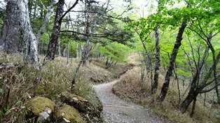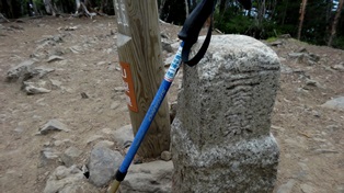 2015年05月29日(金)初登山 喜寿を過ぎてもまだ登れそうな日本百名山が、4山か5山残っている。それらを登れば百名山の半分の五十名山に手が届くかもしれない。今回は「大菩薩嶺」を目指してみた。半分はドライブ旅行を兼ねてドライブ仲間と出かける。富山より神岡-平湯温泉へ出て、国道158号で松本に出て、中央自動車道を走り甲府南ICで出て、石和温泉近くの「鵜飼山遠妙寺」に寄る。このお寺に伝わる伝説を元に、謡曲「鵜飼」が創られているからである。能楽師としてはちょっと覗いておかねばなるまい。 ![]() 大きなお寺である。すぐ近くに笛吹川があり昔は鵜飼が行われたようだ。謡曲では阿房の清澄寺の僧が石和川の辻堂で一夜を明かす事になる。殺生禁断の場所で夜な夜な鵜を使い、見付かって捕らわれふし漬けに遭い、非業の死を遂げた鵜使いに、回向を頼まれる。 ![]() 僧が一石に一字法華経の句を書いて川に投げ入れ回向していると、閻魔大王が現われ殺生の罪で地獄に落すべきだったが、法華経の回向もあり極楽へ送らんと、法華経の功徳を説き、慈悲を勧めて立ち去った。 ![]() 境内に鵜使いの勘作の、供養塔や御堂があり、回向をした僧(日蓮)の像もある。 この日は石和町に泊まった。本当は温泉に泊まりたかったのだが、朝早く出発したいので温泉旅館ではなく、ビジネスホテルに泊まった。早朝6.30分に朝食バイキングが利用できるので有難い。 二日目 大菩薩嶺 ![]() 7.00にホテルを出発。国道20号線を走り、甲斐大和駅の近くから県道218号線に入る。車はほとんど通らなくて舗装してあり、思ったより広く快適に走れる。 8.30分に上日川峠の上にたどり着く。ロッジ長兵衛があり前の駐車場が空いていた。人気の山だが平日なので20台位が停めてある。バス亭もある。 ![]() 少し離れた所にトイレ舎がある。使わせていただく。8.45分に用意して出発。 ![]() ロッジの右に林道が登っている。ここが登山路である。この先一般車の駐車場無し、ここから歩くようにと書いてある。 ![]() この先の福ちゃん荘までは、タクシーならば乗り入れてくれるようだ。20m程入ると左に登山路が分岐している。良く歩きこんだ登山路のようで入り込む。右下に舗装してある林道が時々見える。ナラの林で新緑が綺麗である ![]() ![]() 9.10分に「福ちゃん荘」に到着。宿泊、食堂、標高1720mと書いてある。福ちゃん荘宿泊者の為の駐車場も少しある。山荘の裏で「唐松尾根と大菩薩峠」との分岐がある。大きな案内板があり、大菩薩峠を経由して登る登山道に「本道」と書いてある。今回はこの本道を登る予定。 ![]() 本道は緩やかに登る分、だいぶ遠回りになる。距離は唐松尾根道の2倍にはなるようだ。最近は唐松尾根を登る人が多いようだ。舗装のしてない林道を歩く。この上に在る介山荘まで細い林道が続いていた。荷揚げの小型車が通るようだ。9.20分に「富士見山荘」に到着。営業していない様だ。富士見荘と云うだけあって「富士山」が見えた ![]() ![]() 9.25分、その先の「勝緑荘」を通過。この宿は営業しているようだ。 ![]() 段々と森を抜け、笹が多くなり雰囲気が良くなってくる。ツツジが咲いている。 ![]() ![]() ![]() 10.05分、ようやく前方に大きな山小屋「介山荘」が見えてくる。登山路はここでUターンして、山小屋の二つの建物の間を通り抜ける。あまりに鋭角に方向が変わるので、心配で地図を見直す。 ![]() 其処に「大菩薩峠」の標識がある。展望が良い。方位盤もある。南アルプスの山が連なっている。足を踏み入れた事が無いので、山を識別できない。 ![]() 南アルプス。大きなピラミッド型の山は「北岳」らしい。?甲斐駒かも。 ![]() 大きな湖は「上日川ダム湖」らしい。「大菩薩湖」とも言うようだ。 ![]() ![]() ![]() 花の無い季節のようだが、この斜面だけに白い花がいっぱいあった。何?。 ここからは尾根を歩く事になり、笹原の展望の良い道が続く。少し登ると「中里介山」の記念碑のようだ中里介山の小説「大菩薩峠」は、この峠で主人公机竜之介が人を切る所から始まるらしい?。 ![]() 10.25分、「親不知ノ頭」と云うピークを過ぎる。よく見ると真中に富士山が見える。 ![]() 10.30分、一度降ると避難小屋があり、「賽ノ河原」の標識があった。 ![]() 「八ヶ岳」が見える。 ![]() 「富士山」も少しハッキリ見えてきた。 ![]() ![]() ![]() ![]() 11.05分に岩のゴロゴロのピークを越えたら、下から唐松尾根コースの登山路が合流していた。この岩山が「雷岩」らしい。 ![]() まだ辛うじて富士山が見える。頂上は展望がないのでここが昼食場所らしい。何人もいる。頂上へ向かった人のザックがデポしてある。 ![]() 頂上までの林の中をブラブラと登ると、11.15分に頂上に到着。 ![]() 林の中にぽっかりと空いた丸い広場の頂上。真ん中に三角点が在る。大菩薩嶺、日本百名山・山梨百名山の標識がある。丁度誰も居ない。 ![]() ![]()