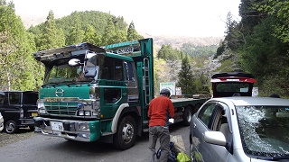 2016年04月16日(土)初登山 この間、相棒K君の山友グループに誘われて、「ホノケ山」に登った。ホノケ山を決めるときにI女史に「舟伏山」の「イワザクラ」を見に行きませんかと声をかけてもらった。所が、舟伏山もイワザクラの事も知らなかった。とりあえず考慮中としていろいろ調べてみた。 舟伏山は岐阜県山県市にある標高1.000mもある山で、登山口まで小松からだと4時間近くも掛かりそうだ。イワザクラは絶滅危惧種に指定されている花で、高山植物の「ハクサンコザクラ」に似ている。イワザクラと云うだけあって、岩の間に生えるらしい。生育している場所は少ないらしく、山県市の舟伏山は有名らしい。山県市のホームページの名山めぐりガイドには、なんと「山県さくら」という名前のマスコットガールがいた。幼いころから地元の「舟伏山」で登山をエンジョイしている女の子。住所/山県市神崎 身長/160cm 血液型/O型 誕生日/4月14日 ![]() 女性に誘われると断り切れない。おまけに山県さくら君にも誘惑されて、舟伏山登山に同行させて貰う事にした。I女史は一昨年五月連休に登ったが、イワザクラの花期に遅れて涙をのみ、今年は雪辱を期している。執心が実って今日だけは晴れそうだ。 5.00時に家を出て、5.30分に徳光SAで相棒とI女史を乗せ、6.10分に東海北陸自動車道の城端SAでI氏を乗せる。 ![]() 今日のパーティ仲間は4名。7.10分、ひるがの高原SAで目の前に「大日ヶ岳」が見える。私は未だ未踏。その右の白い山は、白山の別山らしい。美濃関JCTで環状線に出て、関広見ICで高速を降りる。国道418を走り、谷合信号より右折、県道200を走る。神崎町を過ぎてから分岐を左に林道を走る。 ![]() 突き当りの駐車場に8.50分に到着。駐車中の車は50台くらい。数えた訳ではないが多くてびっくり。無理矢理に一台ねじ込む。直進する道は伐採作業でバリケードがしてある。ここが東コースである。 ![]() 山県市のHPには、東コースは通れませんので、西コースで登山ください、と載っていた。西コースは左へ少し降り、橋を渡って進む様だ。 ![]() どでかいトレラーがバリケードの中から現れた。通って行けるかなー。 ![]() 9.10分、橋を渡った所にある登山届の提出所で、届を書く。川に沿って登って行くと、林道はすぐ無くなり、登山路となる。 二度ばかり川を渡渉する。 ![]() ![]() ![]() ![]() 「ネコノメソウ」 「カンアオイ」 「マムシグサ」 川沿いを登って来たが、川を離れて右の杉林の中を登り出す。急斜面を大きくジグザグに付いた登山路である。 ![]() 杉林を過ぎると左へトラバースの道がある。急斜面についており、道が崩れた所もあり緊張する。そこを通り抜けると一登りで「阿弥陀仏」に着く。 ![]() 石室に入った地蔵さんかと思ったが、阿弥陀仏らしい。小さな広場の休憩所になっている。 ![]() 相棒K君が飛ばして登って行ったが、ここでお湯を沸かして、抹茶休憩の支度をして待っていてくれた。いつもありがとうございます。まわりの人は羨望の眼で見ているぞよ。案内板によればここは「阿弥陀仏」という地点になっている。石を積み重ねた室に入った小さな阿弥陀仏で、赤いよだれかけをしている。 ここから杉林が終わって、雑木林を行く。 蕾が筆のようだから「フデリンドウ」というらしい。「ハルリンドウ」と区別がつかない。 ![]() ![]() ![]() 「ヒトリシズカ」も多く咲いて居る。あとは「スミレ」 ![]() ![]() ![]() ![]() ![]() すごい急斜面を、大きくジグザグに切った登山路を登って行く。11.00時に「展望台」に到着。ここも休憩所になっているが、あまり展望はない。 木々は未だ芽吹かずの状態だが、よく見ると斜面にはいろんな花が咲いて居る。 ![]() ![]() ![]() ![]() 「キランソウ」 「ゲンジスミレ」? 「ルリソウ」 ![]() ![]() ![]() 「ハタザオ」 「ニリンソウ」? 「ヒトリシズカ」は多い。 ![]() 11.30分に急坂を登りきり 平坦になる。伏せた舟の底にたどり着いたらしい「バイケイソウ」 ![]() これは「ヤブレガサ」 ![]() ![]() 「カタクリ」も咲いて居る。 舟底尾根は、広くて緩やか。天気が良くて気持ちが良い。 ![]() ![]() 小舟伏山頂を通過。11.35分。 頂上まであと600mと書いてある。 何の花?。 前方に大きなピーク。あそこが「舟伏山」の頂上らしい。 ![]() 12.00時丁度に広い頂上に到着。 ![]() ![]() ![]() 三角点がある。