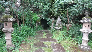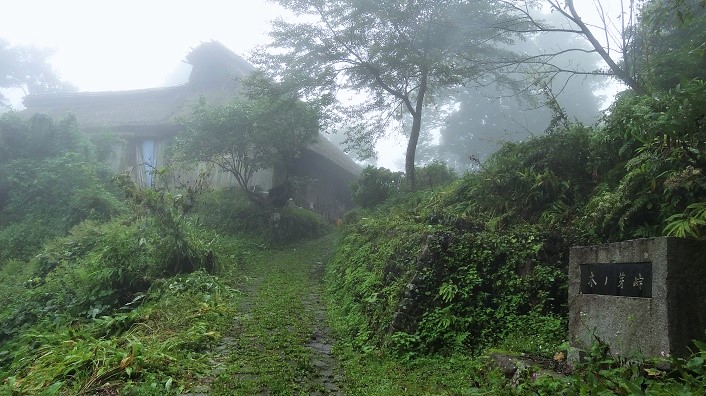 敦賀湾が見えないかと、長時間粘ったが、ちらりと一瞬見えただけ。 ![]() 1時間も休んで下山開始、木ノ芽古道の先を少し進み「言うな地蔵」を訪ねる。 ![]() 茅葺の「言奈地蔵堂」があった。覗くと石に彫った地蔵様が見えた。その前で御勤めをするようで、ちゃんとかたずいている。前川様が管理しているようだ。「昔、大金を持った旅人を殺した馬子が、面前にあった地蔵に、地蔵言うなと言ったら、地蔵は、言わないがおのれ言うなと、と言い返されたそうな」。年を経て再びこの峠を越えた時、、若い旅人と道ずれになり、地蔵の前に来た時地蔵の謂れを聞かれ、昔の事を話してしまう。この旅人は殺された男の息子で、親の仇を探す旅だった。敦賀に降りてから敵討ちをしたとの事である。 ![]() ![]() 言うな地蔵からは、登って来た道を戻る。15.15分に車に戻り着く。 ![]() 帰りにスキー場の下の「板取宿」に寄る。 ![]() 昔の宿場だが、壊れかけの茅葺屋根の家が数軒のみ。 ■次回登山は、7/24加賀「加賀市中央公園」へ■ 2016年09月19日(祝)初散策 車で「久須夜ヶ岳」と「木ノ芽峠」 謡曲「安宅」の道行きに地名が色々出てきます。「波路遥かに行く船の、海津の浦に着きにけり。東雲はやく明け行けば、浅茅色づく有乳山。気比の海、宮居久しき神垣や。松の、木乃目山。猶行く先に見えたるは、杣山人の板取。河瀬の水の麻生津や。末は三国の湊なる。蘆の篠原波寄せて、靡く嵐のはげしきは、花の安宅に着きにけり、花の安宅に着きにけり」。とあります。 友達のシテ方能楽師「藪俊彦師」の御社中機関紙に、「奥の横道の能楽古跡」と云う拙文を毎号に載せてもらっている。何年も書いているので、そろそろ書く事が無くなってきた。今回は謡曲「安宅」の道行きの部分に載っている「地名」の探索ドライブである。特に「木乃目山」は敦賀から今庄に抜ける「木ノ芽峠」の上の「鉢伏山」の事らしい。お天気が良ければちょっと登ってこようと登山靴も車に放り込む。 北陸自動車道を敦賀ICで下車。国道8号線より国道161号線を走ると「国境高原スノーパーク」に着きます。福井県と滋賀県の県境です。ここは何度も来ています。「高島トレイル」と云う登山路の登り口です。高島トレイルとは、高島市の西側の山脈が、日本海と太平洋の分水嶺にあるのでその峰を連ねた登山コースです。登山者にはなかなか人気のあるコースです。この国境から登る最初の山が「乗鞍岳」です。乗鞍岳へ 謡曲に出てくる有乳山は、辞書によれば、歌枕。福井県敦賀市南部の山。愛発山とも記す。《万葉集》巻十に〈八田の野の 浅茅色づく有乳山 峯の沫雪 寒く降るらし〉がある。北陸道の入口で、愛発関(あらちのせき)が置かれたので,軍記物にたびたび描かれた。《義経記》の巻七には〈愛発山の事〉があり,義経主従が奥羽への途中に通ったことを記し,名義について,加賀白山の女神がこの山で出産し,あら血がこぼれたので〈あらち山〉というとする。 有乳山は「乗鞍岳」の事に違いないと、私は思います。峠を越えて滋賀県に降りて海津の岬をひと回りしました。琵琶湖を舟で渡り海津の浦に上陸した義経一行の跡を探すためです。義経が隠れた岩があるとの事でしたが見つかりませんでした。今津から国道303号で小浜まで出て一泊。 ![]() 翌日は小浜八幡神社の「能楽堂」を見学。前日のこの神社のお祭りは台風の影響で、雨の中の神輿巡幸でその後かたずけをしている。 ![]() すぐ近くの「空印寺」に寄る。八百比丘尼の伝説のあるお寺。人魚の肉を食べて800歳歳まで生き、この寺の洞くつで入定したという。 ![]() 敦賀へ戻る道に「久須夜ヶ岳」へ登るエンゼルラインを見付けて入り込んだ。初めてだが道が広くて登りやすい。晴れていればよほど展望の良い山だが、台風でしばらく登ったらガスの中に入ってしまった。頂上に大きな駐車場がありびっくり。 ![]() ![]() 駐車場付近には三角点がなかった。タブレットで検索したら、すぐ近くの別のピークにあった。登山路は記入してないが、電波塔の記入があるので道はあると思われる。しかし今回は探すのをやめて次回へ持ち越し。久須夜ヶ岳、一等三角点、618.54m。 ![]() 久須夜ヶ岳から降りて敦賀まで行き、敦賀インター付近より国道476号線を走る。高速道路に並走して走り、木ノ芽峠トンネルの手前の右に木ノ芽峠への古道が残っている。看板によれば「平安時代より明治初期まで、千年以上にわたり敦賀と福井方面を結ぶ幹線としい使われた歴史的古道である。紫式部、親鸞、蓮如、芭蕉などがここを通った」。ここから登るのが本当であるが、今回はトンネルを抜けて、今庄365スキー場より車で登る予定。 ![]() 峠近くの駐車場に車を留めて、見当をつけて山道に入り込む。特に標識は無し。登ったら「木ノ芽峠」の石標があり、石畳になっており峠上に茅葺の家がある。家前まで登ったら犬に吠えられた。しかも一匹は繋がれていない。犬はちょっと苦手、周りの写真を撮