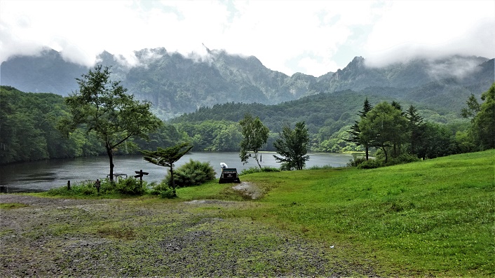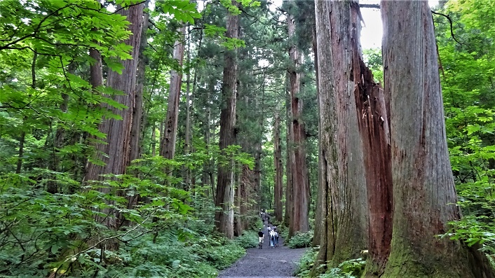 ![]() 野尻湖の反対側の平野が少し見える。どこかな? ![]() 「大明神岳」まで300mだが、へたばって行きたくない。情けない。 ![]() 小さな祠があり「薬師像」が収めらているようです。13体あるようで、1体は薬師像、12体は十二神将だとか。一体だけが見えるがあとは中に入っていて見えない。「斑尾山の薬師様は13体」という看板がある。この薬師様にまつわる民話を紹介してある。 ![]() 村人一体持ち帰ったら、不幸が続き、返しに行ったらどうしても一体祠に入らない。そのままにして帰ったら翌日ちゃんと中に納まっていた、とかとか。戻ってきた相棒二人と下山開始。 ![]() 振り返ったら斑尾山ピークが見えた。右に延びている尾根の先が大明神岳だろう。 ![]() 「斑尾ペンション街」らしきものが覗ける地点があった。信越トレイルを万坂峠へ降りる予定だったが、遠回りになるし、へたばっているし、時間も遅れてきたので、野尻湖テラスの方へ戻った。 光線の加減で、野尻湖の雰囲気が変わってくる。 ![]() ![]() 切られるのを免れた「ユリ」が畑から外れて一輪あった。 ![]() ![]() ![]() ![]() ![]() ![]() ![]() ![]() ![]() ![]() ⑤番標識から①番標識迄直通車道を降りた。 ![]() 16.15分に駐車場に戻り着いた。斑尾山稜線に雲が出ていた。 ![]() すぐチェックインして温泉に直行。夕食はバイキング。GOナントカで料金割引でした。 翌日の戸隠高原は下に続く 2020年08月30日(日)2回 戸隠高原「戸隠神社奥社」「鏡池」周遊 ![]() 朝もバイキングだが、広い窓から「斑尾山」が見える。8.30分に出発。野尻湖のふちを通り、戸隠高原に向かう。 ![]() 県道36で「戸隠神社奥社入口駐車場」に車を留める。広い有料駐車場で車が多く埋まっている。10.00時。 ![]() トイレ寮がある。県道から一直線に2kmほどの参道が続いている。今日はまず奥社迄のトレッキング。 鳥居をくぐって参道に入る。 ![]() 参道の脇に「シラヒゲソウ」がいっぱい咲いている。 ![]() 中間地点の「随神門」が見えてきた。杉並木。 ![]() 地理院地図に標高1241mの記入あり。標高が高いのだな。 ![]() 今日の仲間の記念撮影。一人だけ早くも、バンザイ降参している者がいるぞ。 ![]() ![]() ![]() ![]() ![]() ![]() 奥社に近づくと階段状の登りとなる。 ![]() 11.00時に奥社到着。なかなか遠かった。若き頃一度来た無記憶がある。「戸隠神社・奥社」の後ろの稜線は戸隠山らしい。ちょっと見える。 ![]() 奥社の一段下に「戸隠神社・九頭龍社」がある。奥社と共に「戸隠神社五社」である。 ![]() 九頭龍社の下に「戸隠山」の登山口がある。登山届のポストがある。入山には歓迎しますが、非常に危険ですので、心して入山して下さい、と書いてある。 随神門迄戻ってきて、今日はここから「鏡池」への遊歩道に入る。 ![]() クマ除けの鐘を鳴らす。鐘を提げてある柱が熊にかじられている。熊も金を鳴らしたのに違いない。サラシナショウマ。キツリフネソウ。バイケイソウ。オオカメノキ。ツリフネソウ。 ![]() ![]() ![]() ![]() ![]() ![]() ![]() 参道は人が多かったのに、遊歩道は誰も歩いていない。 ![]() おばあさんが座ってる像がある。二つあった。なにか判らない。 その先に「天命稲荷社」があった。 ![]() 稲荷社の先で「鏡池」に到着。12.35分。風が無く湖面が鏡のごとく、その上に戸隠連峰がのこぎりの歯のごとく影を映す、という写真を見て期待をしていたが、まあまあこのようだ。 ![]() おまけに雨がパラパラと降って来た。食事もそこそこ、落ち着いて居られない。 ![]() ![]() 時間があったら「戸隠中社」まで歩いて、お蕎麦でもと考えていたが、鈍足で遠回りは出来なくなった。遊歩道を戻って途中から「戸隠森林植物園」を通って帰ることにした ![]() ![]() ![]() ミゾソバ ![]() ![]() ![]() ![]() ![]() 森林植物園の遊歩道は少し荒れている。木道に所々穴が開いて危ない。そうゆう訳で所々に周り道の標識がある。 ![]() 参道入口の鳥居の前の小屋に到着。14.45分。蕎麦風味のソフトクリームで、トレッキング終了で乾杯。帰途は山越えで白馬に出て戻る予定。 ![]() 「戸隠中社」に参拝。戸隠神社五社の一つ。 ![]() この辺りは若い頃に何度も来ている。奥裾花の水芭蕉が日本一と聞いて尋ねてきたし、謡曲に「紅葉狩」にある、鬼女の岩屋を探しに来たこともある。平維茂が鬼女を退治したのでこの辺りの地名は「鬼無里・きなさ」と呼ばれている。「鬼無里の湯」があり営業していたので入って帰る。 ■次回登山は、9/6加賀「奥獅子吼山」へ■ 2016年10月15日(土)1回 タングラムより「斑尾山」テラスまで 「北信五岳」という言葉を聞く。長野県の北信濃地方の平野から見える、五つの山を指すらしい。ホテルタングラムから斑尾山に登るトレッキングコースの、始まりの看板にも載せてある。 「斑尾山」「妙高山」「黒姫山」「飯縄山」「戸隠山」の五山である。 ![]() ところで、友達と山の温泉を探していて「ホテルタングラム」を見付けた。スキー場にあり今の時期料金が安い。しかもホテルから斑尾山