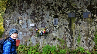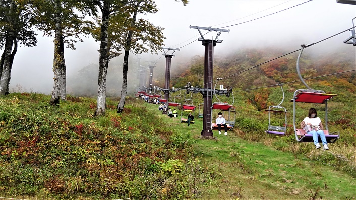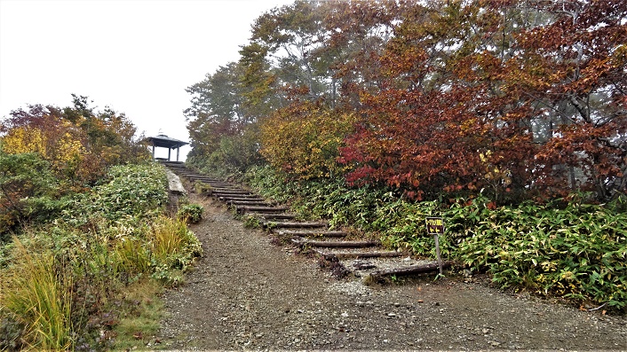 2021年10月09日(土)2回 「八海山」女人堂まで往復 仲間二人に日本百名山「谷川岳」に連れて行け、と云われて、ケーブルに乗り天神尾根を往復するコースに同行する事になった。自身は55年も前の若い頃に、テントを担ぎ一度だけ頂上を踏んだ事がある。勿論ケーブルには乗らず土合から歩いた。今回は老人は谷川岳には登らず、天神岳辺りをウロウロとして、仲間が往復してくるのを待って居る予定。その第一日目はまだ歩いた事のない「八海山」の途中の「女人堂」までのトレッキングコースを往復する。小松を車一台で仲間4人で5時出発。長岡から関越自動車道で六日町インター降車。八海山ロープウェイ山麓駅9.30分到着。 ![]() ゴンドラ往復代金2400円。10時に乗る。 ![]() 霧雨。大きな駐車場がある。 ![]() 真っ白で何も見えないなー。 ![]() と思っていたら、突然霧を抜けて周りが見えてきた。あれが「八海山」らしいな。 ![]() ロープウェー山頂より出たら、目の前に赤い鳥居。少し紅葉している。 ![]() 鳥居をくぐると避難小屋に出るが、少し左の「展望台」に登る道を登る。 ![]() 展望台に登る。 平地は見えないが「八海山」の方だけ見える。少し先に避難小屋が見える。あそこから尾根を通って行くようだ。 ![]() ![]() 展望台より降りてトレッキング開始。避難小屋の後ろに「八海山遥拝所」があった。この先が八海山である。信仰の山なのだな。 ![]() 尾根を登ったり降ったり。 右側に八海山が見えた。手前に「薬師岳」と、続いて8っの岩峰が連なる「八海山・八ツ峰」があり、その先に「入道岳」がある。入道岳が一番高くて1776m、八ツ峰の8番目の大日岳が1720mである。ロープウェー券の裏に書いてあるのを写した。大日岳が10合目なので、ここが頂上らしい。 ![]() 「八ケ峰」の登山道は鎖場が続き、私みたいな老人の足を踏み入れる場所では無いが、女人堂までは行けるらしい。 ![]() ![]() 穏やかな広い尾根で、登ったり降りたり。 ![]() ブナの木も混じってくる。 ![]() 青い実がいっぱいついている。 向かいに「薬師岳」の見えるピークに登り着いた。ここは地理院地図に「池ノ峰」1296mの記入のある地点らしい。登山道は平になる。 ![]() 右側に「コギ池」があり、ちょっと入り込む。可愛らしい池だった。 ![]() 左側の方が開けた。雲海の遠くに山が見える。尾瀬方面かな。近くの山は魚沼駒ヶ岳❔ ![]() ![]() ハシゴが見えてきた。ここから女人堂まで、何か所もハシゴが続き老人はビックリ、どっきり。 ようやく高いピークにたどり着いたが、女人堂が出てこない。地図を見ると手前が「浅草岳」で、後ろが「薬師岳」らしい。 ![]() 少し降りたら、下に歩いている人が見えて、その上に女人堂の屋根らしきものが見えた。 ![]() 12.20分にようやく女人堂前の広場に出た。昔は女性はここまでで、この先は入山禁止だったらしい。 ![]() 登って来た方面。丸い山が越えてきた「池ノ峰」だな。 ![]() ![]() 寒く無いので小屋の横のベンチで昼食。食べるので一生懸命で、肝心の女人堂の中を覗くのを忘れた。レポなし。登山者2.3人休憩中。 後ろの山が「魚沼駒ヶ岳」かなと思うが、見当はずれかも知れない。 ![]() 一座も特定できず。 ![]() ![]() 同じ道を下山開始。八海山の見える地点まで降りてきた。相変わらずの雲海。 ![]() 避難小屋から直接赤い鳥居に降りる。前はロープウェーの乗り場である。 ![]() 横に展望の広場がある。山頂駅展望図によれば、こちらの方に「巻機山」「苗場山」「妙高山」「北アルプス」が見えるらしい。 広場から、麓が少し見えるようになった。山も少し見えてきたが、何処か判らないな。 ![]() ![]() ロープウェーで駐車場まで降りてきた。なんと駐車場より八海山が見えるのだ。 この後、また高速道路に乗り、水上インターで降りて、明日の「谷川岳」に備えて、湯檜曽温泉ホテルに入る。 ![]() 53年前の1968年9月に「魚沼駒ヶ岳」に登った写真が出てきたので載せて置く。頂上直下の「駒の小屋」に泊まった。 ![]() これが頂上だったと思う。 ![]() その時に撮った写真の中に「八海山」と思われる写真があった。間違いないだろう。 下の「谷川岳」に続く。 2021年10月10日(日)2回 「谷川岳」ロープウェイ山頂より「天神峠」往復 八海山の帰りにスーパーで買い物をして、ロープウェー駅に近い湯檜曽温泉のホテルに入る。朝が早いので食事なしのプラン。温泉に入って、部屋で宴会して寝る。 ![]() 朝6時出発。谷川岳ロープウェイの駐車場に車を置く。ロープウェー往復2100円。大きなゴンドラが次々と出てゆく。 ![]() 晴れると思っていたのに、あんまり良くないな。 ![]() 山頂駅を降りると、すぐ横にリフト乗り場がある。その下より「谷川岳」への登山道が始まっている。 ![]() リフトに天神峠に登って、降るように進むとこの道に合流する。どちらからでも同じようなコース時間と思われる。下からは次から次へと登山者が谷川岳を目指している。仲間とここで別行動。14時から15時の間に待ち合わせだ。紅