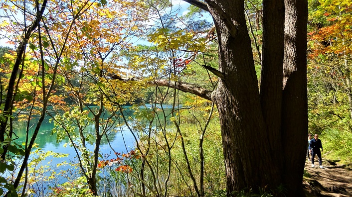 2018年10月06日(土)3回 女性コンビと三山巡りの@五色沼 二週続けて土日になると台風が来た。台風24号は先週日本を縦断して、大きな被害が出た。私にも被害が出た。永い間地域文化の振興に功績を挙げたとかで、30年度の功労者に選ばれ表彰されることになった。その表彰式が30日(日)に、国立京都国際会館での「文化庁創立50周年記念式典」の中で行う事になっていた。壇上で代表が表彰状を受け取り、その他大勢の我々は平服で良いとの事なので、こんな機会は無い、話のタネに出席しようと、前日の宿と電車の切符を予約してあったのにーー。この台風で突然表彰式が中止になってしまった。慌てて宿と切符をキャンセル。 今回の東北紅葉散策は、東吾妻山・栗駒山・蔵王山を予定して、ネットで宿も確保していたが、またも台風25号が直撃するという。延期も考えたが、山に登れ無い場合は観光と言う事で決行することにした。 ところが「東吾妻山」の噴火警戒レベルが、9/15日にAに引き上げられ、磐梯吾妻スカイラインが通行止めになっていた。仕方が無いので裏磐梯の「五色沼自然探勝路」を歩くことにした。 小松市民病院で待ち合わせ、S女史とN女史を乗せて5.00時に出発。北陸自動車道を走り新潟より磐越自動車道に入る。磐梯河東インターを降りて磐梯山ゴールドラインを上る。途中に「猪苗代湖」が望める所がある。11.50分。 ![]() 「磐梯山」も紅葉している。この先磐梯山登山口の八方台を通過。三連休の初日で駐車場は何百台で溢れかえっている。 ![]() 11.20分に「五色沼自然探勝路」の磐梯高原側の入口に到着。靴を履き替えナップザックで出発。土産店休憩所トイレのある建物の横から探勝路に降りると、すぐそばが「柳沼」である。 「柳沼」 ![]() ![]() 気持ちの良い散策路を行く。まだ紅葉していない。少し残念。 「青沼」 ![]() 「るり沼」 ![]() ![]() 向こうに磐梯山が見える。1888年(明治21年)7月15日に噴火。477人の死者が出た。真ん中の大きくえぐられた部分が崩壊し、こちらへ流れ出し川を堰き止め、桧原湖や小野川湖が出来たとか。えぐられた部分に小磐梯山のピークがあったらしい。 ここでカメラの三脚を構えていたカメラマンに、集合写真のシャッターを押してもらう。 「弁天沼」 ![]() ![]() 弁天沼のほとりで昼食。 「みどろ沼」 ![]() 「赤沼」 ![]() 「毘沙門沼」 ![]() ![]() ![]() ![]() 「毘沙門沼」は一番大きい沼である。ここで「五色沼自然探勝路」は終わり。表通りまで歩くとビジターセンターがある。センター前のバス停に、丁度路線バスが到着した。すぐ乗り込む。車を置いた磐梯高原駅に13.25分に到着。乗車時間は10分も掛からない。バスの乗車時間を入れて2時間の散歩だった。 この後は、明日の「栗駒山」登山に備えて、なるべく栗駒山登山口の近くと言う事で、鳴子温泉郷の「川渡温泉」に旅館を予約してある。到着時間が判らないので食事なしで自炊が出来るコース。5000円・安くて有難い。吾妻磐梯レークラインを走り、福島西インターより東北道を走り、古川IC降車。台風の影響は今日は無かった。問題は明日。曇ってきて小雨が降り出してきた。台風は温帯低気圧に変わったようだ。コンビニへ寄り、宿へは17.30分に到着。温泉を楽しむ。 下に続く 2018年10月07日(日) 女性コンビと三山巡りのA栗駒山登山禁止で断念 夜中に雨が降っていたが朝には止んでいた。しかし少し風がある。「栗駒山」は何とか登れそうな感じ。6.30分に旅館を出発。ナビを頼りに、今日の登山口「いわかがみ平駐車場」を目指す。小雨が時々降る。県道42号線に合流し、ようやく駐車場も近づいて来た実感。辺りに建物が数件、温泉が湧いていて宿泊施設がある様だ。7.30分。ここから先はジグザグ道の登りとなる。霧が懸かっているが山の方が紅葉している。上から数台車が降りてきた。はてな?と思っていたら、大きな駐車場の前で、登りがバリケードで止められていた。ナビで見ると終点の「いわかがみ平駐車場」では無くて、もう少し下の大駐車場である。係の人がいて「今日は強風が予想されている。栗駒山は強風にさらされる場所が広く、登山を禁止にしている」との事である。残念。断念。 「栗駒山」は登れなくて、栗駒山のページは作らなくても良いのだが、また登りに来る事に期待してページを作り、替わりに観光してきた「中尊寺」「毛越寺」「立石寺」の写真を載せる。 ![]() 小雨霧雨で栗駒山の写真無し。車道を降りながら路肩に車を留めては、今日の観光予定を立案中。女子二人とも東北の観光はあまりしていないようなので、世界遺産の「平泉・中尊寺-毛越寺」を案内する事にした。ナビに中尊寺を入れて出発。9.00時過ぎには中尊寺の門前第一駐車場に到着。 ![]() 月見坂を歩き出す。ここから歩くと境内は中々広い。栗駒山を歩く替わりだ。 ![]() 「弁慶堂」がある。私の住んでいる小松市に「能・安宅、歌舞伎・勧進帳」の古跡があり、弁慶は小松を通過して、ここ平泉に到着した。藤原秀衡