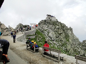 2014年08月30-31日(土日)8回 浄土山-一の越-雄山 第1日目30日 (室堂-浄土山-一の越山荘) 今年の夏は天候が良くない。本当は皆と唐松岳へ登る予定だったが、雨の予報や体調不良などで参加者がN女史と二人になった。N女史とはお盆に蝶ヶ岳登り、濃霧の中を歩いたばかり。彼女は9月より、介護の資格を取ったので大阪で就職の予定。今回の登山を楽しみにしているので、天候悪くても登りたいと云ってきた。蝶ヶ岳には山小屋が一つしかなく、荒天の場合は逃げ道がないので、行き先を「立山」に変更した。立山ならば小屋がいっぱいあり、少々の荒天でも大丈夫だ。こうして今年の夏山最後の登山が始まった。 5.00時に小松市民病院で待ち合わせ。高速を富山に向かう。途中で早くも雨が降り出した。所が富山に近ずくと雨が止んできた。6.40分にケーブル駅下の駐車場に車を置く。ケーブルは行列で、順番待ち。7.40分のケーブルに乗る。バスに乗り換えて8.50分に室堂到着。何と晴れていて山が見える。儲けもの。 ![]() 今日は一ノ越山荘に宿泊予定。浄土山を越えて入る予定。浄土山もすぐ近くに見える。 ![]() 室堂の前から石畳道を外れて、右に登山路に入る。この先には室堂山展望台があり、立山カルデラや五色ヶ原方面の展望が良い。 ![]() ![]() 展望台のすぐ手前より浄土山の方へ入る。10.20分。雲があったの展望台は行かなかった。別山から剣御前の稜線。雷鳥沢から登る登山路が見える。 ![]() ここまでの間に、いろんな花が咲いていた。時期的に花を諦めていたのに、たくさん残っているので、うれしい。いつもと同じなのだがー。 ![]() ![]() ![]() ハクサントリカブト アキノキリンソウ ヤマハハコ ![]() ![]() ![]() イワイチョウ ウサギギク ミヤマリンドウ ![]() ![]() ![]() ダイモンジソウ ヨツバシオガマ ミヤマダイコンソウ ![]() ![]() ![]() チングルマ イワツメクサ タカネヤハズハハコ ![]() ![]() ![]() イワギキョウ トウヤクリンドウ ミヤマウスユキソウ ![]() 11.20分に浄土山の頂上に到着。頂上は広くどこが一番高いのか判らない。三角点でもないかと、高い地点を覗いたら雷鳥が居た。 ![]() 北峰に石垣に囲まれた遺構があり、碑がある。軍人霊碑と書いてある。調べたら、日露戦争で死亡した2600人の富山県出身の軍人を祀ったものらしい。 南峰と呼ばれる所に建物があり、富山大学の研究所らしい。雄山に向かって一ノ越の方へ降る。雄山は時々姿を現す。峠に今夜泊まる予定の小屋が見える。 ![]() 振り返ると、右手のなだらかな山が浄土山。左のゴツゴツの山が竜王岳。 ![]() ![]() なんとか雨に降られず小屋までたどり着けそうだ。 ![]() 13.30分に一ノ越山荘に到着。大きな小屋である。 ![]() 小屋に入ってひと寝入り。外に出て小屋前広場で、コーヒーを入れて貰う。小屋前の展望図を見ると、富士山から槍・穂高、燕・大天井など全部見える展望地である。 ![]() 5.00に早くも夕食。 夜中に屋根を揺るがす雨が降った。明日は駄目かなーー。 第2日目31日 (雄山往復-池巡り-室堂) 真夜中に雨が降っていたが、朝には止んでいた。外へ出てみたらみんな頂上を目指している。 7.00時に我々も頂上を目指す。今日は縦走を諦めてまた一ノ越へ戻る予定なので、リュックは小屋に預けて出発。 ![]() 室堂平の方が晴れて見えてきた。 ![]() 頂上もずーっと見えなかったが、見えて来たぞー。 ![]() ![]() 8.20分に頂上到着。N女史が一番高い奥社でお祓いを受けようと云うので、祈祷料を払って登る。昔一度登った事がある。最近はずーっとパスしていた。 ![]() 前組が終わるまで、中腹の広場で待機。 ![]() 奥宮の前で全員腰を下ろす。下に円い石が敷き詰められていてお尻が痛くない。これは昔から登山者が、下界の河原の丸い石に、願い事を書いてここまで持ってきたのだそうである。なるほど願いが書き込んである石もある。 ![]() 全員お祓いを受ける。奥宮の前の広い石が、立山雄山・3003mの基準になっていると聞かされた。そう言えば社務所横の一等三角点の標高は、2991.76mである。 ![]() 時々ガスが切れて室堂平が見える。 ![]() ![]() 一等三角点で記念撮影。