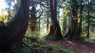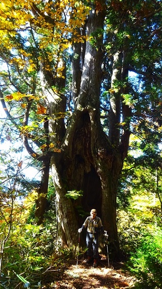 2025年08月04日(月)15回 立山「室堂平」散策 毎日暑い。高い所に登れば少しは涼しいだろうと3年ぶりの「室堂平」。さすがに涼しかったな。しかし下界に戻ったら暑い事暑い事。小松市は又全国一の暑さだったらしい。 ケーブル駅前駐車場は満車。少し離れた駐車場に車を置く。行列で1番ケーブルには乗れなかったが、すぐ臨時が出た。7.30分。満員。 美女平でバスに乗り換え。車の中から薬師岳。 バスを降りホテルのある建物の中の階段を上り外へ出る。立山が見える。 登山者でいっぱい。 立山の下に室堂小屋が見える。 雄山の方へは向かわずミクリガ池の方へ進む。 剣御前の方に「剣岳」が覗く。 雄山と浄土山。その間に一の越の山小屋。 ワレモコウ ヤマハハコ チングルマの綿毛 タテヤマリンドウ これもタテヤマリンドウ ヨツバシオガマ イワイチョウ オトギリソウ オトギリソウ 何かのケルン。 奥大日岳と大日岳。 オンタテと大日岳連峰。 ミクリガ池が見えてきた。 ミクリガ池山荘。 ミクリガ池まで降りた。 ウサギキク ダイモンジソウ エゾシオガマ タンポポ キオン ハナウド シシウドかな。花の名前は適当です。詳しくない。 ミクリガ池。 ミクリガ池。 みくりが池山荘。 剣岳。 地獄谷。今は進入禁止。 今度は、雷鳥沢山荘の方へ降りる。 「血の池」を通る。 また登り返して雷鳥沢山荘の前を通る。 雷鳥沢山荘の先の広場のベンチに到着。 この先は凄い降り。下にテント場。あそこ迄降りるのかと思ったら、元気が無くなり、ここで昼食する10.40分。 反対側には地獄谷。本当はテント場まで降り、直接室堂を目指す予定予定だったが、ここから戻って室堂を目指すことにする。 奥大日岳を見ながら昼食。ここから登った事があるが辛かった。 同じ道を戻る。大きく降ってまた登り。 またミクリガ池。 登りの時とは反対側の一周路を行く。 雄山と浄土山。 今度は「ミドリガ池」に出る。向こうは一の越の方面。 ミドリガ池は、ミクリガ池とは少し感じが違う。 ミドリガ池の向こうに、雄山・真砂岳・別山。 ミドリガ池と、浄土山・雄山・真砂岳。 中々雄大な眺め。 浄土山の下の室堂が近くなった。 室堂に到着。この小屋はまだ泊まった事が無い。 イワオウギ ノギラン? タテヤマリンドウ リンドウ 植えてあった? 昔の「室堂」が展示場になっている。 玉殿岩屋へ行こうと言うS女史。 室堂の裏から、雪渓を横切り急坂を降りる。 降りてきた雪渓。雪渓の近くで、雪解けが遅くて、花の咲くのが遅れて残っている。 チングルマ チングルマ ミヤマキンバイ? アカモノ? タンポポ クロトウヒレン ミソガワソウ ミソガワソウ ハクサンイチゲ ハクサンイチゲ アオノツガザクラ アオノツガザクラ イワイチョウ イワイチョウ オトギリソウ ヨツバシオガマ 急坂を降りて「玉殿岩屋」へ行ったS女史、岩屋への道が藪になっていて、岩屋までたどり着けなくて、登り返してきた。 雪渓を渡って室堂へ戻る。室堂はバス乗り場に近い。雄山まで登った人が大勢戻ってくる。頂上まで登れないが、室堂平徘徊でヨボヨボ老人は大満足。 ■次回登山は、8/9「粟津岳山」へ■ 2023年10月24日(火)14回 立山「美女平」散策 「歩くアルペンルート」がある。バスに乗らなくて立山に登る道。美女平から弥陀ヶ原、天狗平から室堂平と続く。今日は美女平辺りを散策。6年ぶりの2度目の、紅葉を訪ねての老人徘徊。。 S女史と小松を出て、高速道路で3度の渋滞。平日なのに朝は工事中で渋滞するらしい。何とかケーブル乗り場に到着。予定より遅れたな。 10時のケーブルに乗車。団体さんは外人の観光客。ケーブル料金往復1800円。10分も掛からず美女平駅に着く。 駅にニックネームの付いた「立山杉の巨木」の写真が張り出されている。今日はここから歩く。 外へ出ると「お迎えスギ」。 「立山は佐伯有頼により開山。ありよりの許嫁の姫は逢いたい一心で立山に登る。有頼は山を拓くまで戻れないと追い返した。帰る途中で一本のスギに【美しき御山の杉よ。心あらば我がひそかなる祈り、聞きしや】と祈った所、願いがかなった。現在でも三度唱えれは恋は成就する、とかとか。 広場の突き当りの案内板。歩くのが目的だから一番外側の「水色のコース」を歩く。但し最後のバス道路歩きは、途中から内回りコースで戻る予定。 探勝歩道入口から出発。 いきなりのハシゴ階段が続く滑りそうで怖い。 谷を越えてまた登り返すと、分岐点に出る。外回りのコースに入る。あとは緩やかな遊歩道となる。 巨木が現れ出した。 「火炎スギ」。炎が燃え盛るようにそびえ立つ巨木。以前は立札があったが今は見当たらない。 「タテヤマ杉」。案内板によれば「富山県の県木。杉の変種のアシウ杉の一種。雪に耐える性質がある」 とか。 大きな「ブナの木」も出てきた。 緩やかな道。 近くの山が見えてきた。七姫山? この二股杉が分岐点。中道が分岐。外回りへ。 ブナの木。 ブナの木。 タテヤマ杉。 ブナの木の紅葉。 ブナの木。ちょっと