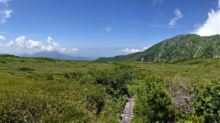 2016年08月10日(水)11日(祝)9回 室堂平-一の越-浄土山 第1日目 8月10日 (室堂平-雷鳥沢-室堂小屋-一ノ越山荘) 今年は暑い。へたばりそう。11日は「山の日」である。今年の夏山は第3弾は「立山」にした。単独行であるからのんびりと、室堂平の池巡りをして、一番近い「一の越山荘」で泊まって、あくる日は立山頂上は何度も登って居るので、代わりに「龍王岳」の頂上でも登って、「浄土山」経由で「室堂山展望台」でも回って下山しようと考えた。とにかくお天気次第の気分次第の気まま登山に決めた。4時半に家を出て立山ケーブルの乗り場近くに、6.00時過ぎに着いた。 ![]() いつも駐車場は満車の事は判っているので、称名川を渡ってすぐ左折して、少し遠い駐車場に車を入れる。ここはまだ余裕がある。6.20分頃に切符売り場に並ぶ。なかなかひまが掛かる。20分以上待って7.30分発の便が取れる。 ![]() ケーブル7.30分に乗る。混んでいるので10分間隔で運行している。バスは定員制ですぐに接続している。隣に座った人は地元立山町芦峅寺の人で、これから室堂まで行き、ポランティアでガイドをしているとの事。室堂平周辺で団体客を案内するらしい。立山の話をお互い色々して楽しかった。年齢が私より上で、80歳となったと聞いてびっくり。 ![]() 8.40分頃バスターミナルに到着。朝、車で走っていて、立山は雲の中で見えなかったが、室堂平まで登ってきたら、晴れていてラッキーである。 まずお池巡りをして、雷鳥沢まで降りる予定。 まず「ミクリガ池」。向かいは剣御前。剱岳がちょっと見え。向こうに見える「みくりが池温泉」へは進まず、室堂の方へ進み池の向かい側を通る。わざと遠回り。 ![]() 「ミクリガ池」と「ワレモコウ」と「奥大日岳」 ![]() 立山「雄山」と「オンタデ」 ![]() 室堂山荘まで行き、また「ミクリガ池」と「ミドリガ池」の間を通る。「アザミ」 ![]() 右手に「ミドリガ池」がある。白い「ヤマハハコ」 ![]() 「大日岳」「奥大日岳」「ミクリガ池」と「オオハナウド」 ![]() また立山の方へ進み、ぐるりと向かい側へ一回り。 ![]() 雷鳥荘に近づくと左に池がる。地図には名前は無い。 ![]() 雷鳥荘まで登ると「地獄谷」が俯瞰出来る。以前はみくりが池温泉から地獄谷へ降りる道があり、雷鳥沢まで近かったが、今は地獄谷へは通行禁止で、遠周りしなければならない ![]() ようやく雷鳥沢のキャンプ地が見えてきた。 ![]() 10.20分、キャンプ地を通り抜け、雷鳥沢を渡り、一の越へ登り始める。石像を収めた室がある。6体の石仏が見える。形が違うから六地蔵ではないだろうと思う。 ![]() 「チングルマ」は実になっている。向こうは「浄土山」 ![]() ![]() だいぶ登ったら分岐に出た。向こうに「室堂山荘」が見える。直進する道は降って「玉殿岩屋」の方へ行く。分岐には標識が無い。左にトラパース気味に登って行くのが一の越への道だと思うが?。ちょっと迷っていたら、地面に張り紙が落ちていた。「この先工事中で通行御遠慮ください」と書いてある。「室堂」へ行く道が工事中なのか、「一の越」へ行く道が工事中なのか判らない。 ![]() 室堂山荘の方から人が登ってくるのが見えた。ここからの道はまだ歩いたことが無い。だいぶ遠回りになるがこの初めての道を降りる事にした。振り出しに戻るみたいに「室堂山荘」の近くに出るはずだ。12.00時。 「カラマツソウ」 ![]() 遊歩道の通る橋が、全部新しくなっているから、工事中と云うのはこの遊歩道の事だったらしい。 「ミヤマキンポウゲ」 ![]() 「ヨツバシオガマ」 ![]() 「シナノオトギリ」 ![]() 「ウサギキク」 ![]() 「ミヤマリンドウ」 ![]() 「トリカブト」 12.40分に、室堂から一の越に至る本道に合流した。ほとんど人が通らない道だった。本道からの入口に「雷鳥沢キャンプ場に至る道・2.5km・登山装備が必要です」の看板があった。 ここから一の越へ登って行く。一の越山荘と雄山頂上の社務所が見えてきた。 ![]() 14.00時に一の越に登り着いた。今まで見えなかった東の方が見える。槍ヶ岳がすぐ目につく。 ![]() 槍穂高の手前の山はどこ?。水晶岳?野口五郎岳?右は赤牛岳?その上のピークが水晶?。 ![]() 室堂平の歩いた道が良く判る。 ![]() 夕飯前に外へ出てみた。益々晴れてきた。左の上に水平の稜線が見えてきた。「燕岳」から「大天井岳」への表銀座コースらしい。左が燕、右が大天井。 ![]() 夕方17.00時近くなのに団体さんが到着した。 ![]() 17.50分。夕食を済ませて外で休んでいる人が多い。右端に「笠ヶ岳」が顔を出していた。 ![]() ![]() ![]() ![]() 夜の20.20分頃に外へ出てみた。大日岳の左に富山平野の明かりが見えた。奥大日岳の右にも町明かりが見える。浄土山の上に月が出ていた。 頭上には星が出ていた。星をつくづく眺めるのは久しぶりだ。北斗七星が見える。北極星も見える。オリオンも見える。 第2日目 8月11日 (一ノ越山荘-雄山往復-浄土山-室堂平) ![]() 今日は「山の日」。早朝3時頃から皆さんごそごそと動き出す。のんびり