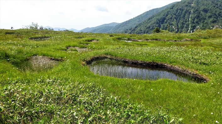 2013年08月04日(日)5回 (室堂平散策) 昨日やっと梅雨が明けたとテレビで聞いた。もう八月に入っている。日帰りで奥大日岳へ登ろうと朝早く飛び出して、6.30分に立山ケーブル駅に着いた。さすが日曜日すぐにはケーブルに乗れない。順番待ちで三便に乗って、7.20分に室堂平に着いた。所が予想外、濃い霧が立ち込め小雨が降っている。8.45分に雷鳥沢のテント場を過ぎ、雷鳥沢の橋を渡り左に折れそろそろ登りと云う時に、雨が強くなってきた。しばらく考えたが取りあえず「ロッジ立山連峰」まで戻り、雨宿りする事にした。 小屋の入口ロビーで着替え。梅雨が明けるとしばらくは晴天が続くのが常識。簡易雨具しか持って来なかったので、弱った弱った。二年前にこの小屋に泊まった時、温泉風呂が良かった。入り口に10時ヨリ入浴できます、と張り紙があるので、聞いたら今さき湯を抜いたのでしばらく入れないとの事。この上の「雷鳥沢ヒュッテ」なら入れます、との事で、少し上のヒュッテで朝風呂とシャレる。 ![]() ゆっくりと風呂に入っていたら、雨が止んで明るくなってきた。11.20分にテント場まで降り、又雷鳥沢の橋を渡り、今度は右に曲がり、一ノ越方面に登って行く。この道は2年前に通った事がある。静かで、花がいっぱい咲いていそうな道である。 沢を渡渉するのに、渡り難い所があったが、後は登り易い道である。 ![]() ![]() コイワカガミ イワイチョウ ![]() ![]() ツガザクラ ミネズオウ ![]() ![]() 石仏 チングルマ ![]() ![]() ハクサンイチゲとミヤマキンポウゲ 雷鳥 ![]() ![]() タカネヤハズハハコ コバイケイソウ ![]() 今年は残雪が多い、バスターミナルから直接一ノ越に登る道にも雪が残っている。 大日岳の雲はまだ取れない。 ![]() 一瞬だが室堂の上の奥大日岳の、小さな頂上が見えた。今日はあそこへ登る予定だったがー。 ![]() まあいいか。こちらには花がいっぱいだった。奥大日岳はまたの機会に。一ノ越の下で本道と合流し、バスターミナルへ戻った。 **次回登山は、8/10-11「別山」へ** |