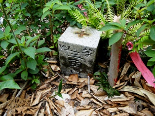 ![]() 皆さん食事を済ませて段々下山して行ったので、少し場所が空いてきた。今回の記念撮影。全員で5名。これが全員集まった時の「加賀の里山逍遥の会」最近は厚かましくも、加賀の里山で無くとも山名札を提げることもある。 荷物を置いたまま最高地点の中金剛へ探索に出掛ける。まだ残雪がある。私は途中の歌碑のあるピークまで行って、中金剛には登らなかった。山名札は中金剛に提げてきてもらった。本当は三角点のある場所が金剛堂山の頂上であるが、大きな木が無くて提げる場所が無い。 ![]() これは先頃まで食事をしていた頂上を振り返った所。石の祠の頭が見える。この辺りは風が強くて大きい木が育たないらしい。高山らしい雰囲気が良い。 ![]() ![]() 「コバイケイソウ」が咲いている。未だ花が完全に開いていない。 ![]() 「ツマトリソウ」 ![]() 池塘があってオタマジャクシがうようよ。「イワイチョウ」も咲きだした。 ![]() 頂上に戻って13.05分下山開始。頂上には白木峰の林道の方から、大勢のパーティが登って来ていて、ススダケをコンロに並べて焼きタケノコで食事中。登る途中で収穫したらしい。我々もススダケタケノコを探しながら下山。前方の1451ピークを越えて降りてゆく。 ![]() 登るときには探さなかったが、地図を見ていると1キロ地点の標識辺りに三角点が在るらしい。1`標識の前に登るように道があったので入り込んでみたら、20m程で「四等三角点」を見付けた。誰もあまり気が付かないでしょうね。