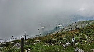 ![]() 時計回りに四ノ池を一周して小屋に戻る事にした。ここまではほとんど上り下りの無い道だったが、一周すると急な坂を下り、また登らなくてはならない。一周する人は少なく、ほとんど人は戻って行く。 ![]() しばらく降りると、こちら側のコマクサの群生地を通る。木曽町立開田中学校の「綺麗なコマクサを取らないでください」の看板がある。 こちらを周ると木曽側が良く見える。前回登ったゴンドラリフトの駅が見える。雲海の上は中央アルプス。 ![]() ここからか岩場の急な坂をどんどん降りる。緊張してゆっくりゆっくり。一番下まで降りて川を渡る。四ノ池の水がここから流れ出している。向こうに見える噴火口の縁を登ってきた。上に残月がある。よく見ると稜線に「飛騨頂上」の社が見える。 ![]() ここからまた登り返す。四ノ池と三ノ池の間の稜線を登る。左手に三ノ池が見えてくる。上り切ると小屋のすぐ横で、ご来光を眺めた所である。 ![]() ![]() 9.10分に一周してきて、小屋のテラスで、コーラを一人で乾杯。目の前が摩利支天山で、テラスの下が五ノ池である。茶色い水が少し溜まったパッとしない池である。3時間近く掛けてひと回りしてきた。 ![]() 小屋横の「飛騨頂上」の前を通って、9.20分下山開始。10.30分にお助け水。11.10分にのぞき岩。11.55分に湯の花峠。 ![]() 12.10分にジョーズ岩。ここから見るとジョーズに見えない事もない。12.30分に仙人橋を渡る。 13.10分に駐車場に到着。 ![]() 少し降ると「下呂市濁河温泉市営露天風呂」があったので入って帰る事にした。脱衣場と大きな露天風呂だけである。丁度誰も入っていなかった。 同じ道を通って帰った。 **次回登山は、8/29富山県「奥大日岳」へ** (この登山より一年ほど後、御嶽山が噴火、57人の犠牲者が出た。私の泊まった五ノ池小屋辺りは、かろうじて難を逃れたようだ。) 2009年07月31-01日1回目 御嶽ロープウェーより 第1日目 07月31日(ロープウエィ終点-女人堂-頂上小屋) 木曽の「御嶽山」は以前登ったことがある。調べたら1990年に登っていた。濁河温泉から登った。お天気が良くて最高だったが、そのときは仲間がへたばって、二の池小屋に泊まって、頂上には登らなくて下山した。それでも御来光は小屋の前から見えた。北アルプス、中央アルプス、南アルプス、わが故郷の「白山」も見えた。御嶽は独立峰だから実に見晴らしの良い山であった。 去年、木曽をドライブしたとき、御岳ロープウェーに乗った。頂上駅から登山口があった。案内板によれば頂上まで日帰りで登れると書いてあった。老人としては日帰りは無理でも、小屋泊まりならなんとか登れそうである。機会を狙っていた。 ![]() 相棒のK君も濁河温泉から登っていたが、今回はコースが違うので同行してくれた。それと、県外の山は初めてのS女史の3人パーティ。20年ぶり位だ。7/30.自宅を6.00.に出発、相棒を乗せ高速に乗り、北陸道から東海北陸道に入り「飛騨清見」で降りて「高山」に出る。この路線が開通して高山が近くなった。開田高原を走り9.45.に御岳ロープウェーの乗り場に着いた。ゴンドラなので待たずに乗れる。 ![]() 10.20.に早くも頂上駅に着いた。外へ出ると御嶽山が見える。左のピークが頂上らしい。雪渓も残っているのが見える。さすが3000mを超えた高山だ。 ![]() 裏の広場に御岳社。安全登山祈願。それにお天気。明日から8月なのにまだ梅雨が明けない。天気予報も良くない。高山植物園がある。コマクサが咲いている。 ![]() 広場の奥から登山路が始まっている。10.30分。 ![]() 山すそを巻いて10分ほど歩くと、田ノ原からの登山路と合流してすぐ「七合目覚明行場山荘」に出た。趣のある昔ながらの小屋である。観光客もここまで歩いてくるらしい。 ![]() 11.40.「八合目女人堂」の小屋に着く。森林限界が過ぎて見晴らしが良くなる。小屋前のベンチで弁当を食べる。この山は山小屋が多くあり、何でも売っているようだ。無理して重い荷物は持たないほうが楽だ。 ![]() まだ頂上が望める。30分も居た。 ![]() この山は信仰の山なので、道端のあちこちに石鳥居が在って、神像とか行者像の石像が並んでいる。少々うるさい位だ。 ![]() さっきまで晴れていたのに雨が激しく降り出した。あわてて合羽を着る。大きな岩の陰で一休み。 ![]() 13.40.「九合目石室山荘」到着。登山路がなんと小屋の真ん中を通過している。ほかに客が居なかったので、素通りがしにくくて、コーヒーを注文する。 ![]() 14.50.頂上小屋に到着。小屋と社務所の間より83段の石段を登れば頂上である。15.05.頂上。濃霧で周りは何も見えない。まずお参りする。それにしても想像していた頂上と全然違う。第一に人が誰も居ない。我々3人だけである。 ![]() 夏山の最高シーズンのはずだが、お天気が悪いためか登山者が少ない。頂上は人でごった返しているかと思っていた。とにかく記念撮影。 ![]() 大きな一等三角点もある。最高の展望を期待していたのに何も見えない。小屋へ降りる。