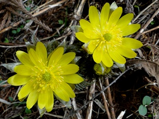 2011年04月26日(火) 白馬山麓ドライブ 新車で白馬山麓へドライブへ出かけた。午後出発で、糸魚川より白馬に向かう。去年、八方尾根より唐松岳に登っている。今年は雨飾山を考えている。雨飾山のある小谷町を通りすぎて、やがて八方尾根が見えてくる。曇っていて白馬は見えない。みそら野のペンションに一泊。翌朝ペンションの食堂より、白馬三山が見えた。右より「白馬岳」「白馬杓子岳」「白馬鑓ヶ岳」である。 宿でもらった、春だよりのパンフレットを頼りに、今日は春探しである。 まずは「四十九院のコブシ」である。二本の大きなコブシの白い花が、手前の水を張った田んぼに映るのが、絶好の被写体なのだが、一本のコブシにようやく花が見える程度。 ![]() ![]() 続いて「飯森村のザゼン草」の群生地である。 ![]() 思ったより数が少なくて残念。 時期が早いのかな。 ![]() ![]() 続いて「五竜カタクリ苑」である。五竜岳に登るゴンドラは動いている。まだスキー場は営業しているらしい。傍らのカタクリ苑に寄ってみたが、まだ一本もカタクリは見当たらない。時期が早いらしい。見当たるのは「イチゲ」だと思うが、紫の花がかわいい。北陸で見るキクザキイチゲとは、ちょっと違うようだ。 ![]() 続いて「姫川原流自然探索園」である。 ![]() ここは「福寿草」で有名である。咲いていた。いっぱい咲いている。感動的だ。 ![]() この後、松本へ出て、高山へ出て帰る。 |