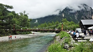 2023年08月07日(月)6回 河童橋-明神池-「上高地散策」 最近の健康登山は、猛暑の低山ばかりで、半分熱中症で徘徊している。何とか涼しい所は無いかと考えて「上高地」を思い出した。今日は一人だし、車も直ってきたし朝5時に出発。国道41号で神岡を通り平湯温泉の「あかんだな駐車場に8時に着いた。 ![]() ここから「上高地」に直通バスが出ている。上高地は自家用車では乗り入れできない。 ![]() 9時に上高地バスターミナルに到着。今日はちょっと天気が悪い。 ![]() すぐ出発。梓川の堤防に上がる。向こうに「河童橋」が見える。 ![]() 河童橋はいつも賑わっている。 ![]() 河童橋を渡る。橋の上より川下に「焼岳」 ![]() 河童橋を渡り梓川の右岸を「明神池」まで歩く予定。「奥穂高」の稜線は雲の中。 ![]() 自然探勝路の標識。河童橋より0.2km。この先明神池まで3.3km。 ![]() 探勝路を行く。辺りが開けてきた。 ![]() 「岳沢湿原」と呼ばれる地点。山は明神岳かな。 ![]() 「岳沢」分岐。前穂・奥穂へ登れるらしい。 ![]() 探勝路は多くの人が歩いている。 ![]() 梓川はあちこち別れていて、何処が本流か判らない。焼岳が見える。 オタカラコウ サラシナショウマ ![]() ![]() ![]() ![]() 上高地は標高が1500mほどあり、水かいっぱい流れているので、やはり涼しい。 ![]() 向こうに「明神橋」が見えてきた。堤防より降りて「明神池」の方へ向かう。 ![]() 「嘉門次小屋」がある。食事をする人で賑わっている。57年前にこの小屋に泊まった事がある。燕から常念を越えてここへ降りてきた。 ![]() 拝観料を払って「明神一之池」に入る。湧水の様で透き通っている。 ![]() 桟橋が伸びている。 ![]() すぐ隣に「明神二之池」がある。こちらは日本庭園みたいな感じ。岩に腰掛休憩。 ![]() 明神橋を渡って、梓川左岸に戻る。 ![]() 山小屋明神館に出た。「穂高奥宮」明神池参道。明神岳が奥宮らしい。 ![]() ここから広い道を河童橋まで戻る。「明神岳」が目の前。ヘルメットの人が多い。穂高から戻ってきたのだろう。 ジャコウソウ ソバナ ![]() ![]() ![]() ![]() 突然猿が道路に出てきた。立札によれば、目を合わせるなと書いてあった。知らぬ顔をしていたら道路を横切って行った。 ![]() 「小梨平」のキャンプ場を抜ける。 ![]() 河童橋まで戻ってきた。大正池まで歩こうかと思っていたが、疲れたのでここで散策を終わりとしよう。 ![]() トリカブトが咲いていた。 ![]() 以前バスが混んで待たされた事がある。早めのバスに乗ろう。14時のバスに乗れた。帰り道、神岡辺りで強い雨になった。上高地で降られなくて良かったな。 ■次回登山は、8/14「橋立自然公園」へ■ 2019年08月12日(休)5回 河童橋-明神池-「上高地散策」 去年も今頃一人で、上高地を散策した。毎日猛暑で涼しい所を歩きたいが、一人で歩けるのは「上高地」位しか思い浮かばない。 ![]() 昨日は「山の日」で今日は振替休日。混むことは判っていたが一人で「上高地」へ遊びに行く。7.00時に平湯温泉アカンダナ駐車場に到着。駐車場はぎっしり満車、何とか留める。 ![]() 8.05分に上高地のバスセンターに到着。今日はここから歩く予定。 すぐ「梓川」の岸辺に行く。穂高稜線が見える。 ![]() 「河童橋」が見えてきた。 ![]() 河童橋は渡らずに、小梨平に進む。去年登った「焼岳」が近い。 ![]() ![]() ![]() ![]() トリカブト オタカラコウ ![]() ![]() ![]() センジュガンピ 明神が近づくと「明神岳」が目の前にそびえてくる。 ![]() 9.30分に「明神橋」を渡る。 ![]() 「嘉門次小屋」の前の、レリーフの前の木株に腰を掛けて休憩。大勢の人が押しかけている。一休みの後300円払って明神池へ。一の池はまことに神秘な場所である。二の池は庭園みたいな雰囲気。 ![]() ![]() ![]() ![]() キツリフネ ![]() ![]() ![]() 明神池から河童橋の方へ、梓川の反対岸を歩いて戻る。河童橋付近より穂高岳方面、岸辺には早くもススキが穂を出している。 ![]() 河童橋を渡らずに「田代橋」の方へ進む。去年とは反対周りをしている。 ![]() ![]() ![]() ![]() ウエストン碑12.30分 ヤナギラン オダマキ 「田代橋」を渡ってバスターミナルの方へ戻る。上高地のトレッキングコースは、梓川のふちを歩くので、意外と涼しい。六百山と霞沢岳らしい。 ![]() 六百山と明神岳と穂高連峰と梓川と。 ![]() ![]() 帰りのバスが混むことは予想していた。14.00時前にバスターミナルに着いたのに、長蛇の列。 1時間以上も並んで、アカンダナ駐車場に着いたのは15.30分。後は自宅まで3時間かーー。 携帯歩数計21.000歩だった。 ■次回登山は、8/17「茶臼山」へ■ 2018年10月20-21日(土日)4回 大正池-「焼岳」-河童橋 第一日目10月20日(土) S女史とN女史の三人で「焼岳」挑戦することになった。三度目の正直である。9/8-9日に予定していたが大雨で断念して一週間延ばした。一週間後の9/15-16は又も台風で、出発したが焼岳は登山コースが危ないと感じて、隣の「乗鞍岳」に登って来た。そして今回の三度目、何とかお天気は良さそうである。 ![]() 小松を4.30分に出発。