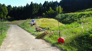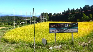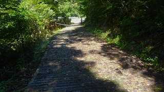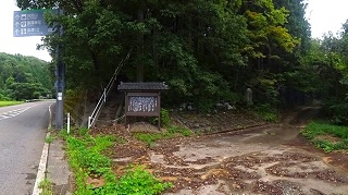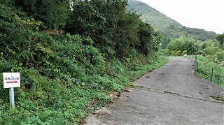 ![]() パイプ組み立ての、工事現場みたいな展望台がある。右に石油備蓄タンクがみえる。 ![]() さっきまで登って居た「高須山」と思われるが。??。 ![]() 上から三角点を写す。非常に高いぞ。風で少し揺れている。へっぴり腰てナントカ降り立つ。 ![]() 三角点で記念撮影をして下山開始。 ![]() 降りは登って来た反対側の斜面に登ってきている林道を降りる。林道歩きでとても楽だが、歩いて来た軌跡を見ると、反対柄の斜面を降り、ぐるりと反対側から一周するように降りる。距離は3倍はある様だ、 ![]() ようやく国道に置いた車が見えてきた。 ところで国道416号線について調べていたら、なんと私の住んでいる石川県小松市から、勝山市に通ずる国道が、少し前に繋がり、それがここを通ってこの先の海まで続いているのだった。 ■次回登山は、6/17加賀「宇谷山」へ■ 2019年10月05日(土)2回 「高須山」を単独徘徊。 4日前に下市山を登った。その時に下市山と高須山のページを合併した。そんな訳で「高須山」も歩いて来ることにした。今日も一人、老人の里山徘徊である。8年前に来た時の登山案内図が新しくなっていた。高須城小学校の、前回と同じ場所に掛かっている。小学校の校庭に停めて、ここから歩き出すコースかが書き込んである。 ![]() ![]() 白山神社の隣の「集落センター」の駐車場まで乗り入れる。前回と同じ場所だ。白山神社に参拝。 ![]() 神社の横に標識がある。まっすぐ進めば良かったのに、集落に降りて、また戻る。 ![]() 一度車道に合流。 ![]() 車道を少し進むと「高須山」が目の前に現れる。 ![]() 林道は左へ登って行くが、登山路はここから直進し、獣除けのゲートを通る。 ![]() 初めは、川沿いである。 ![]() やがて杉の林になる。 ![]() やがて車道の終点に合流。案内図によれば、ここまで車が入ることが出来る様だ。最も道は悪そうだ。 ![]() ここからは、山肌を捲いて、緩やかに登って行く。 途中で海が見える所がある。鷹巣港らしい。 ![]() ![]() 頂上到着。一面の草原、一番高い所に「鷹巣城址」の石碑がある。 ![]() 石碑の下に石の祠がある。誰も居ない。 登って来た方面。高須町だろうな。 ![]() 石油備蓄基地が見える。その先海岸線が飛び出している所が、東尋坊だろう。 ![]() ![]() 同じ道を戻る。 ![]() ![]() 林道終点まで降り、帰りは林道をそのまま歩いて戻る。 ![]() 林道の途中に、獣除けの門がある。車の通行を禁止するものではありません、と書いてある。 ![]() 林道をお終いまで歩いても、白山神社まで出るが、途中で戻るように分岐を降りて、登って来た登山路に戻って、駐車場に戻り着いた。今日は、誰一人登って居ない高須山でした。 ツリガネニンジン カメバヒキオコシ ヤマシロギク ![]() ![]() ![]() ラショウモンカズラ ミズヒキソウ 花の名前は保証しません。怪しいぞ。 ![]() ![]() ■次回登山は、10/9「籾糠山」■ 2011年09月06日(火)1回 「高須山」初登山-「国見岳」初登山 病み上がりで、低い山を探していたら、S女史が「高須山」を見付けてきた。おまけに展望が良いとの事で、ここを歩くことにして仲間に声を掛けたら、久しぶりに4人集まった。これだけそろったのは2か月半ぶりである。 9時に加賀ゆめのゆを出発、高速を丸岡インターで降りて。海の方へ向いてひた走り。佐野町からフォーレスト福井ゴルフ場の周囲を回ったら、高須町にたどり着いた。村の中に入ると「高須城小学校」があり、金網フェンスにこの案内板を見付けた。1995年制作高須城小学校と書いてある。16年前のものである。学校も廃校みたいな感じだ。村の中は狭くて車が置けない。電動三輪のおばあさんに聞いて、「高須町集落センター」の駐車場に入れる。センターは、そのまま学校の横の坂を上り、左に曲がると「白山神社」がある。その境内に「高須町集落センター」がある。折から葬式があるようで用意をしている。 ![]() ここでまた地元の人に登山路を聞く。神社の横を入って行くと、また田んぼに出る。舗装路は行ったらだめで、山道に入る事。イノシシ除けの金網は、電流が流れているので触らないこと。 ![]() 10.30分歩き出す。白山神社にお詣りして、神社の右横の山道を入り、200mほど歩いたら舗装道に出た。田んぼの中を右から登って来て、直進している。前方に丸い高須山が見える。そのまま舗装路を直進して登って行けばよかったのだが・・・・。 ![]() 「高須山頂」の赤い矢印があるのだが、方向がおかしい?。しかもさっき聞いた話の思い込みが激しい。舗装路をいつまでも行ってはいけないとか、イノシシ除けの金網とか。そこで矢印の通り、金網を跨いで棚田のあぜ道を歩き出す。 ![]() 稲刈りの人に笑われて、舗装路に戻る。舗装路を左に曲がりながら200mほど歩いたら、林道の舗装路は左に曲がって行く。直進する山道が登山路だった。この分岐に子どもが造った矢印案内板が有った。「ちょう上へ たかす町へ」と仮名で書いてある。 ![]() 小さな仏様が置いてある。信仰の山でもあるよ