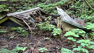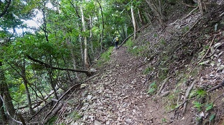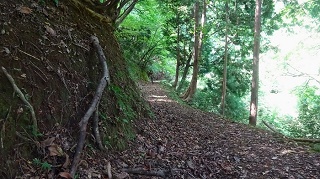 ![]() 降りもあちこち迷いながら同じ場所へ戻った。途中ででトリムパークが近くに見えるので、作業道を下りようかと考えた何処へ出るか判断が出来ず、同じ道を戻った。車道が見えてきた。 ![]() 車を置いた駐車場に戻ってきた。向こうに見えるのが今登って来た「木落山」と思われる。低い山だが手こずって面白かった。16.00時。 ●次回登山は上の項、3/12福井の「岸水山-光蔵坊」へ● 上です。 2020年06月27日(土)4回 「金毘羅山」と続いて「国見岳」 10日ほど前に高須山に登った時、地図を見ていて「金毘羅山」を見付けた。新しい山は大好きである。登って居る人もいる様で、何とか登山コースも判りそうなので、S女史と出かける。越前海岸を走り、大味町から福井へ抜ける県道に入り、しばらくで折り返すように「国山町」に向かう。 ![]() 国山町の細い道を上へ抜けたら「八王子神社」と「愛染寺」が並んで建っており、神社の横に駐車場があった。10.30分に車を置く。 ![]() 「八王子神社」 ![]() 「愛染寺」、お参りして出発。 ![]() 六地蔵の前より林道を登って行く。 ![]() 舗装してある林道を登って行く。400mほど進んだ林道の曲がり角に、右に入る登山道があった。 ![]() 青いテープが下がり、壊れた標示を見付けた。 ![]() 何とか道らしいものが続いている。 朴ノ木の花 マムシグサの実 ![]() ![]() ![]() 杉の木の根っこの股に生えた木。ぼけ老人は、こんな木が大好き。 ![]() ![]() 急坂になり登り切ったら、水平の登山路に登り着いた。地理院地図の登山路にたどり着いたらしい。建物の残骸がある。地図を見れば左は直接林道に続いているようだ。右に進む。 ![]() 緩やかな所を登りとなる。 ![]() 休憩。前方の上の方が明るい。尾根かな?と思ったらガードレールが見えてきた。道がある様だ。 ![]() 地図を見ても林道らしきものは無い。ガードレールの下にたどり着いたが、道路下が壁になっており、壁に沿って左に進んだら道路に登れた。地図に載っていない新しい林道のようだ。ビックリだ。 ![]() 戻ってみたら続きの登山路が始まっていて、大きな「金毘羅山登山口」の看板があった。 ![]() ここからはちゃんとした登山道になった。 ![]() 大きな杉の木が目立つようになると、頂上の神域らしくて神社が近い雰囲気。 ![]() 12.35分に、神社と反射板の建つ金毘羅山の頂上に到着。 ![]() 神社は大きくて、中は板張りの拝殿で賽銭箱がある。その奥が神殿らしい。金比羅神社は海の神様らしい。ここは海に近い。 ![]()