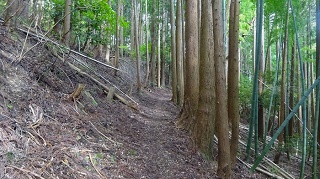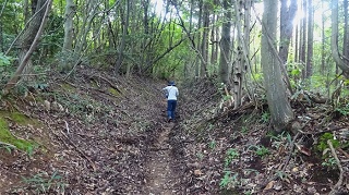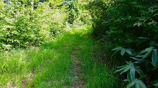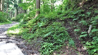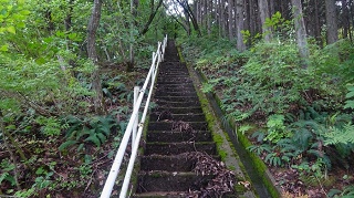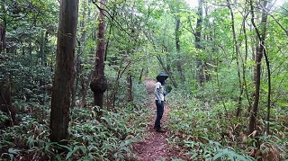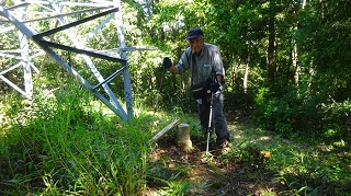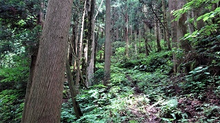 ![]() 神社と反射板の間に三角点がある。神社の前で昼食。木が茂っていて展望は無い。 ![]() 下山開始。途中で木の間から海の方がちらりと見えた。どこだか判らない。 ![]() ![]() ![]() ![]() 林道に降りて来て右に周り、ガードレールの下を歩いて登山路の続きを杉林の中に降りる。ガード下には虎ロープがあるが半分藪になっている。老人はもたもたとしていて相棒とだいぶ置いてゆかれていた。その内に急斜面を降りている時に、道から外れていることに気が付いた。タブレットのヤマップ地図の軌跡を見ると、方向的には間違えていないが、少し近道をしているようだ。平らな所でどこでも歩ける。そのまま進めは登山路に突き当たる様だ。 相棒から携帯に電話が掛かって来た。クマ除け鈴の音が聞こえなくなって、登った時に休んだ場所で待っていたがいつまで待っても現れない。老人は倒れてノビているのかも知れないと、少し戻ってみたりして、心配になり電話をしたらしい。すまんすまん、道から外れた事は判っているが、自分が先へ進んでいるか遅れているかがわからない。もうすぐ登山路に復帰できるからと、まだ電話してもらう。どうやら私の方が先へ進んでしまったらしい。待っていたらすぐ上から現れた。無事再会、平謝り老人徘徊です。 ![]() ようやく林道からの登り口に戻ってきた。しかしここも林道から戻ってきたので、二人して少し道を外している。 ![]() 15.00時に車まで戻ってきた。 今日はこれから「国見岳」の一等三角点を確認して戻る予定。 ●続きは「国見岳」の下の稿に続く● 2020年06月27日(土)4回 「金毘羅山」と続いて「国見岳」 「国見岳」は9年前に、高須山の帰りに車で上り、一等三角点を確認した事がある。金毘羅山から降りて越前海岸に戻る。 ![]() 戻るように走ると「弁慶の洗濯岩」で一休み。トイレがある。義経弁慶一行が東北平泉を目指すとき、このルートを通ったらしい。その先で福井に抜ける県道を走る。 ![]() 国見岳森林公園へ登る「二枚田幹線林道」の入り口があった。 ![]() 国見岳森林公園のキャンプ場の駐車場に車を留める。 ![]() 記憶を頼りに鉄塔のある高い地点を目指す。鉄塔を越えた突き当りに三角点がある。 ![]()