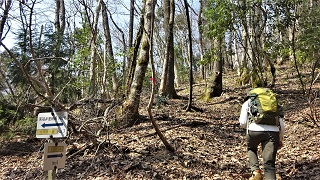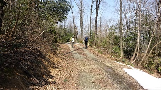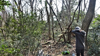 ![]() 三角点のすぐ下まで林道が上ってきている。「石切り場跡」の標識がある。近くなら行ってみようと反対側に進んでみたが、遠そうで段々と降るので諦めて戻る。昔はここに街道が通って居たようだ。 ![]() ウラジロの林道を降って行く。 ![]() 池のふちまで戻ってきた。「大孝池」と云うらしい。今日はこれより「木落山」へ向かう。この信号を左折して「トリムパークかなず」に向かう。 ●続きは下の稿「木落山」へ続く● 2022年03月09日(水)5回 雨請山-「木落山」 ![]() 10分位で「トリムパークかなづ」に到着。第一駐車場に車を置く。11.00時。「木落山」の記録はあまり無い。登山道は無いようた。その中で登りやすそうなルートを参考。 ![]() パークの外側の車道を歩き、最初の舗装してある道路を左折する。 ![]() 坂道をあがり、また下った辺りに、左に山に入る道を見付けた。標識など何も無いが、ここを登れば頂上寄り延びる尾根に登り着きそうだ。 ![]() 谷道を進むと分岐に布切れ。目印かも。 ![]() 足元に咲き掛けの「ショウジョウハカマ」、今年初見。 ![]() 荒れた谷道で、ぐちゃぐちゃの所もある。 ![]() ピール空き缶の目印が続く。多人数だろうな。 ![]() どうやら尾根に登り着いた様だ。 ![]() 尾根には獣道がある。 ![]() 突然に左側が開けた、作業道が見え木が伐採されている。 ![]() 見える山は「刈安山」らしいな。 ![]() 尾根にはテープがある。 ![]() 細い尾根は道が判る。この先の広いピークに登り着いたら、何処へ降りればよいか、赤い布切れが無くなった。道らしきを降りると頂上より遠ざかる。頂上らしき方面に降りると急斜面に出る。 ![]() あちこち藪漕ぎをして、赤い布切れを見付けてホッとする。 ![]() ここからは尾根一筋。ピークを一つ越え、二つ目のピークが近づいた。頂上らしいな。 ![]() 少し開けた頂上の真ん中に「2等三角点」があった。読めない山名札。13.15分 。 ![]() 一方向だけ麓が見える。昼食。 ![]()