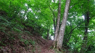 ![]() 三角点から戻り、分岐まで移動する。登ってくる予定だった安波賀に降りる予定。ここに荷物を置いて、登ってくるときに立ち寄らなかった展望地に行く。千畳敷まで下りて展望地へ行く。宿直跡と呼ばれているらしい。福井の街が見える。ただ送電線の電線が横切っていてちと残念。ここも朝倉遺跡の内なので、綺麗に草が刈ってあり手入れがされている。 ![]() この辺りから庭園へ降りる3本目の登山路が在る筈だが、数年前の水害で通行不能になっているようだ。 安波賀に降りる道も良く手入れされている。距離はだいぶ長くなる。ギンリョウソウは目玉が出来ている。 ![]() 緩やかに道を降って行くと、途中で鉄塔のそばを二度通る。鉄塔を過ぎると急坂になる。 ![]() 「ウツボグサ」が咲いている。 ![]() 突然に広場に出た。写真は広場の奥の登山口。標識は無し。 広場を横切るとここに「城山まで1.8K」の標識を見付けた。川のふちまで来たら、100m程先に橋が見えた。 ![]() 「向山橋」。朝はこの橋を渡って、50m程下流を歩いて探したが、もっと先まで探すべきだったのだ。 |