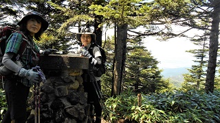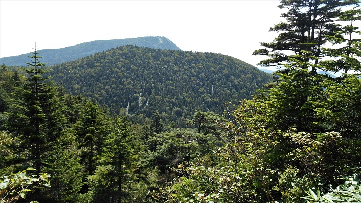 2017年08月26日(土)2回目 日本百名山の「四阿山」に、N・S女史コンビに案内するのだが、その前日の半日を何処にしようかと考えていて、また「志賀山」を思い出した。同じ志賀高原の熊の湯から「笠ヶ岳」へ登るトレッキングコースも設定されているが、彼女らは志賀高原が初めてなので、「志賀山」にした。 ![]() 小松を5.00時に出発。上越より「上信越自動車」に入り、信州中野ICで降り、志賀高原を目指す。9.25分に、前山リフトの駐車場に到着。上まで登ったら広かった。 ![]() 写真を写そうとしてカメラを探したが、車の荷物をひっくり返したが見つからない。家に置いてきたようだ。S女史がカメラを貸してくれた。厚かましくも拝借した。すまない。志賀山と四阿山の写真は、S女史のカメラで写したものである。 9.40分頃、往復券600円を買ってリフト乗車。 リフトを降りた所は、高原の様な感じ。右の山は「鉢山」。左が「志賀山」である。 ![]() 10.00時に「渋池」。向こうの山は「横手山」。 ![]() ![]() 10.20分に、志賀山と四十八池の分岐に出る。前回は四十八池の方へ進んだが、今回は志賀山へ最初に登る予定。案内表示に「左・志賀山(急な登り)経由して四十八池」と書いてある。 ![]() 分岐からしばらくは平坦な道で、木道になっている場所が多いが、笹に覆われている場所が多い。前を行く二人が時々、笹の海にもぐってしまう。 笹の海を抜けて、登りに掛かる。岩ゴロゴロのなかなかの急坂である。背後に「鉢山」と「横手山」がせり上がってくる。 ![]() ![]() 右手に岩壁がある。窓みたいに抜けている所がある。 ![]() 11.35分に「山名表示板」の設置された「志賀山」に到着。木が生い茂り、山名表示板は全然役に立たない。少しだけ下界が見えるのは、中野市方面かな。 ![]() ![]() さらに100mほど進むと三角点のある頂上通過。ここが本当の頂上か。展望なし。記念撮影。